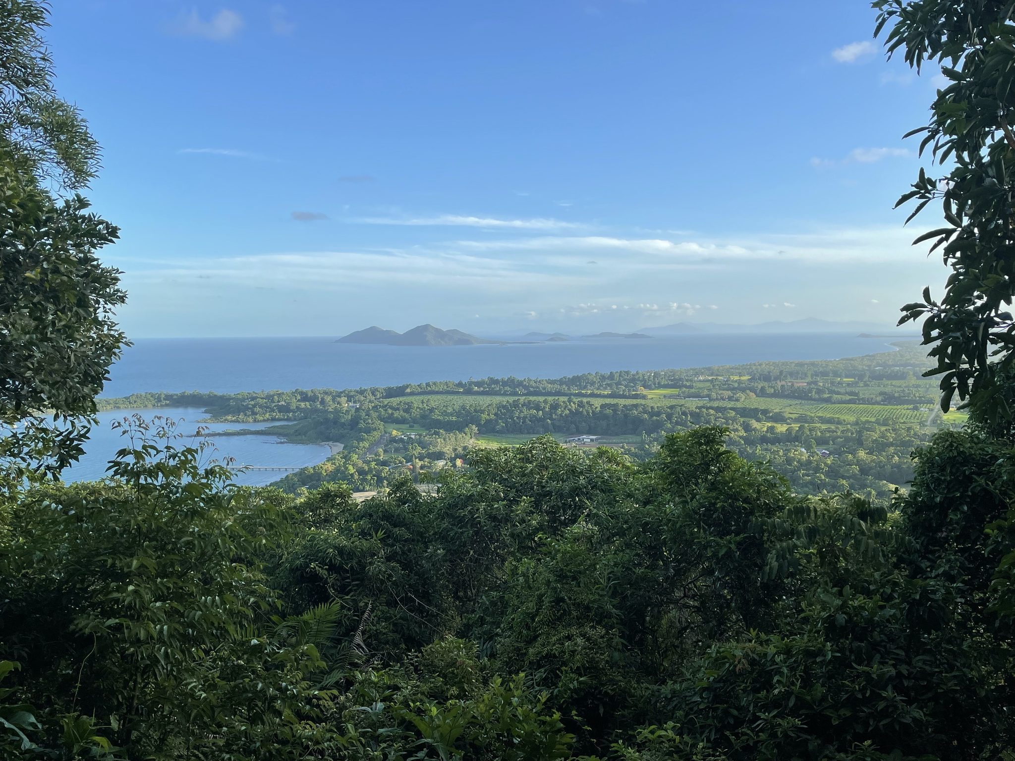 A helicopter circles around in the distance, spraying pesticides on the banana plantation below. The late afternoon sunlight makes its way through gaps and openings in the canopy, and the air is thick and still. I am on the wrong side of the mountain to catch any of the breeze. Sprawled out below me, at the base of the mountain, is a community I know well, mangrove forests and beaches, and, beyond all that, the constellation of islands I visited and swam around as a child.