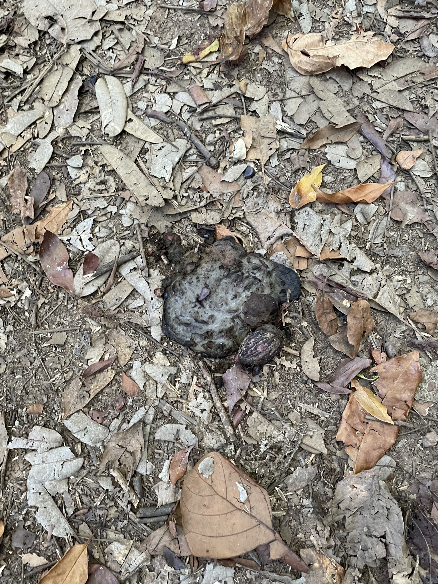 The cassowary scat I’ve been stepping around for the past few days was almost gone; only the digested blue quandong berries remained. And I listen to the buzzing-clicking now as I walk along the track.