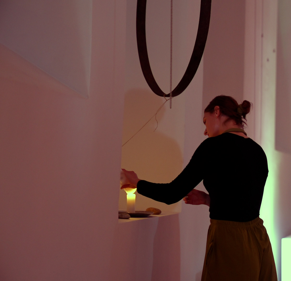 This research is part of my doctoral project Archetypes of Contamination, which focuses on the relationship between symbolic images and processes of environmental transformation. This exposition, Tree of Dawn, develops by looking for the correspondence between radioactive contamination and the traditional Latvian image of the Sun-Tree as found in the Dainas, an ancient form of poetry transmitted orally through songs. My artistic process uses a re-creation and re-interpretation of ritualistic practices. With a focus on radioactive contamination, my research looks at how the experience of contaminated spaces can be read through specific myths connected to the land to interfere with the creation of personal and collective realities. The exposition moves through methods of translation as a way of reflecting on the limits of knowledge, where translation is thought of in the wider senses of transposition, deciphering, decoding, and reading through.