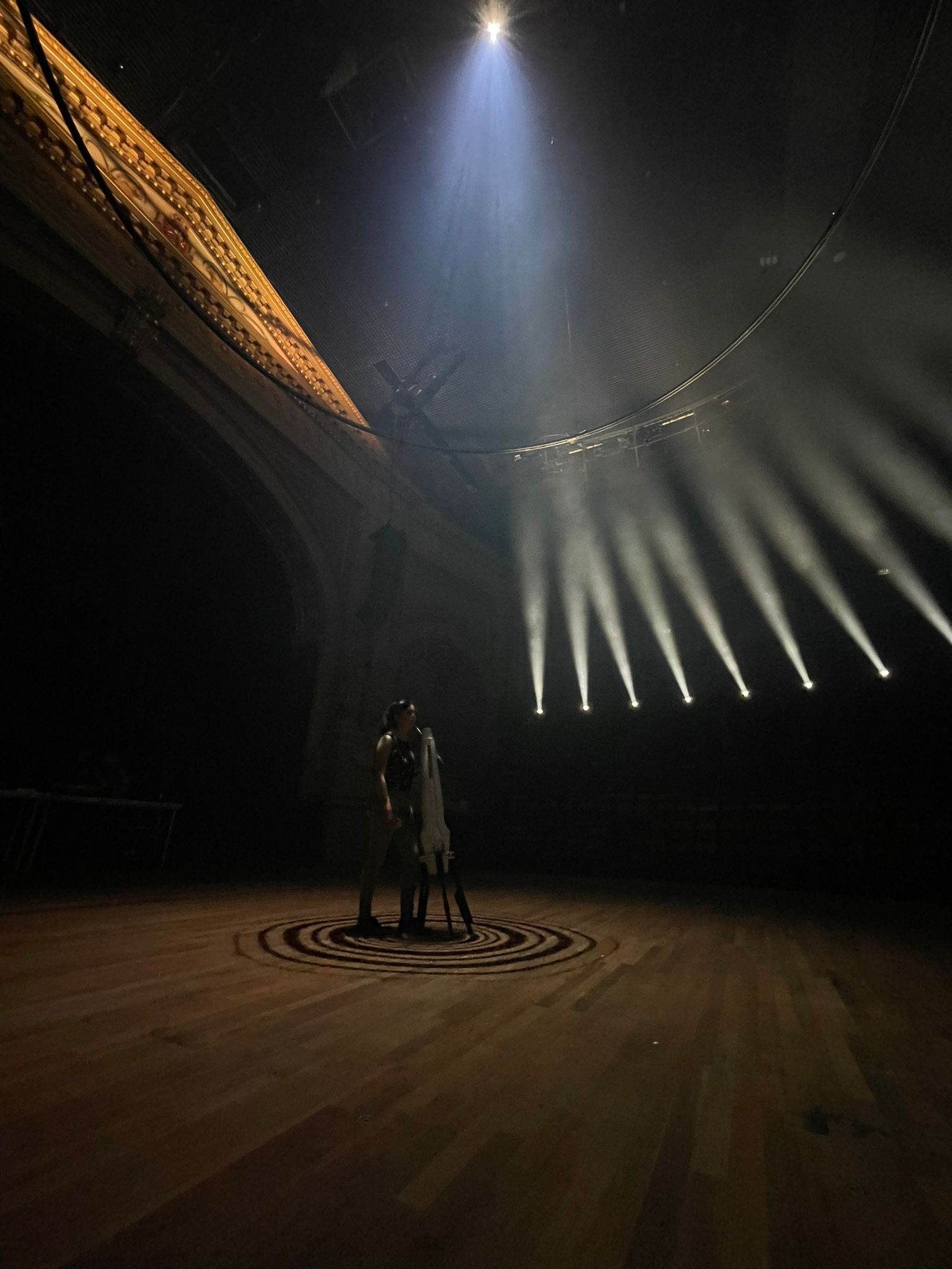 Takeaways from this collaboration also included a moment within a piece that embodies the full music expression of having 24 strings tuned into an unconventional tuning system. I was able to rotate the instrument freely and explore its widest combinations of tones and open strings. In this improvisation I was inspired to understand the relationship of formats by working with artistic qualities that could represent Balance proportion and contrast along the performancein relation to the combination of the visuals projected around me.