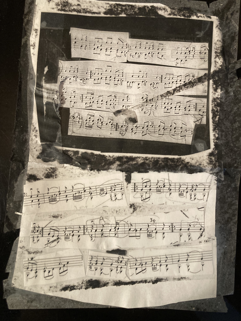 Jeg vil holde på ideen om, minnet av, skyggen av slåtten, holde bruddstykker av en kjerne i tynne, fleksible tråder. Samtidig vil jeg ta inn stemmene fra flygelets syngende historie, all den pianomusikken mine hender har spilt. Den må få sin egen plass innflettet med slåttetrådene. Arbeidet består i å finne hvor og hvordan trådene kan veves sammen. Hvor det er rom, hvor det er resonans, hvor det er vibrerende samklang og rytme.