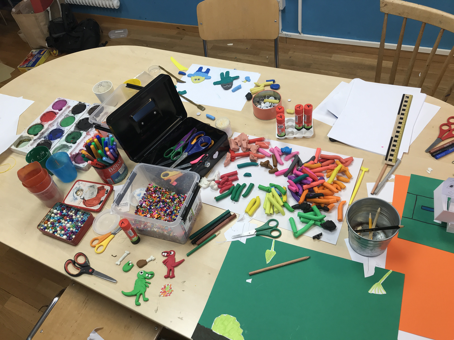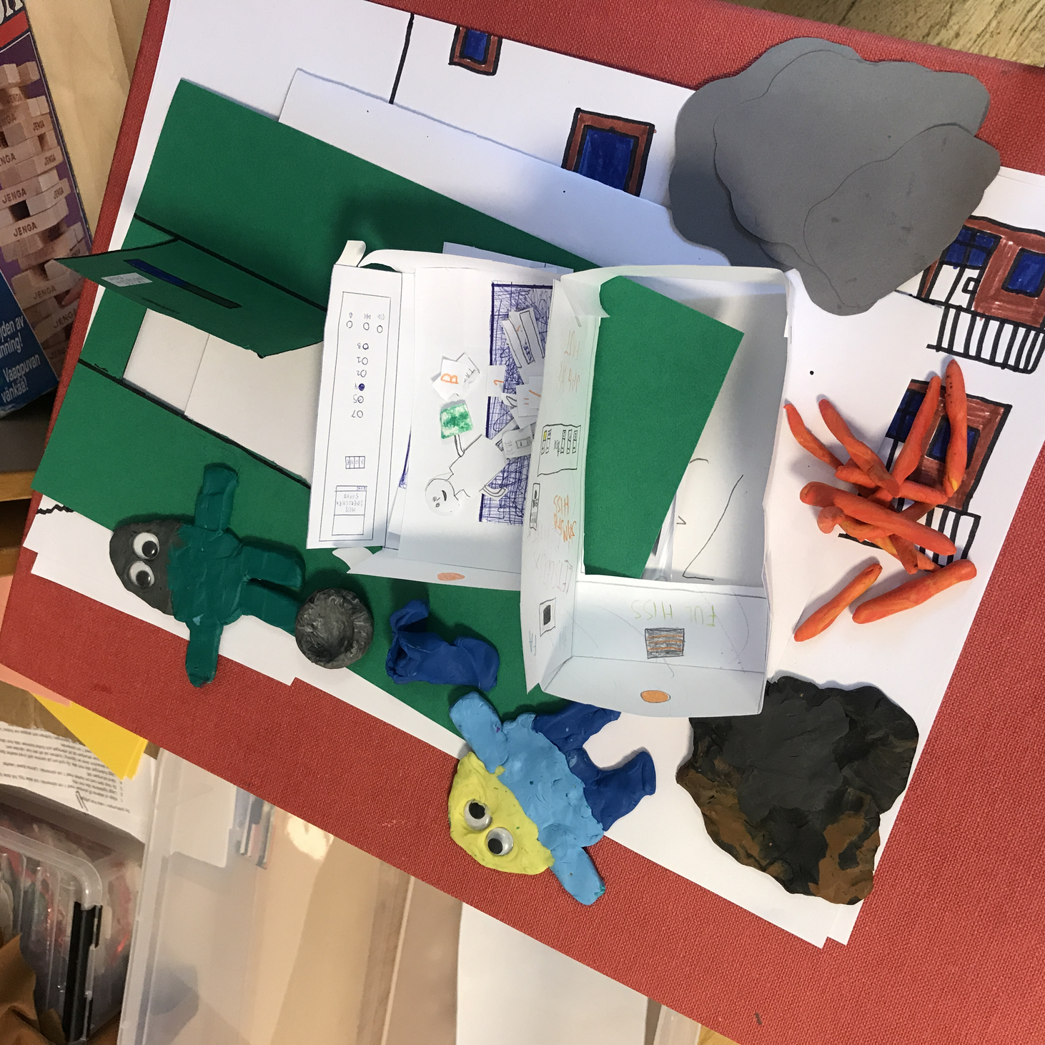 Eleverna fick hitta på själva vad som skulle hända i sina filmer och hur deras bakgrunder och figurer skulle se ut. De fick välja mellan att arbeta med lera och rita och klippa ut papper, men även använda annat som de kom på. Jag lärde bara eleverna absoluta grunder för att komma igång och introducerade till exempel inte arbete med bildmanus och att arbeta med olika bildutsnitt.