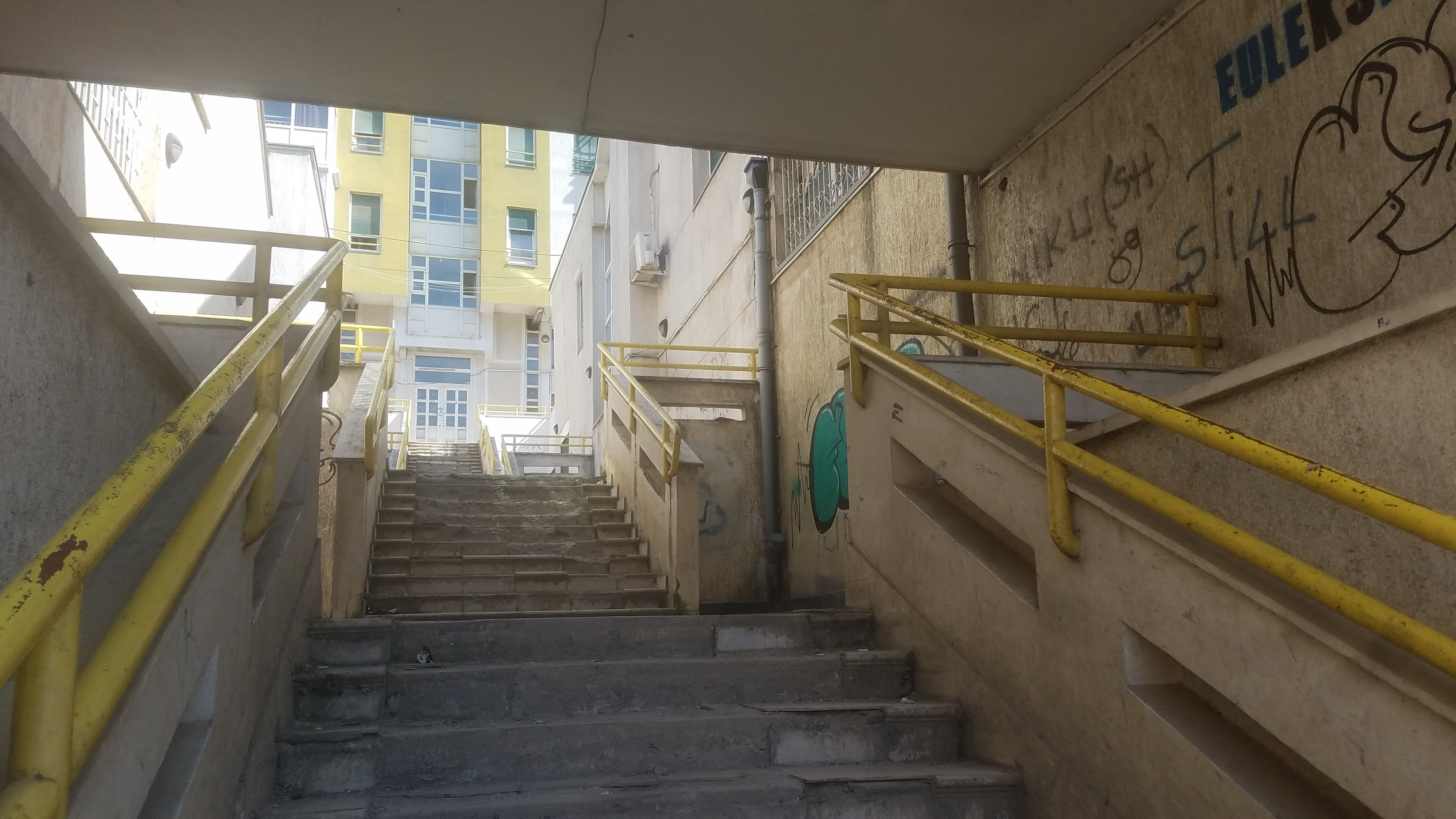 In late March, I was staying in Dardania near the promenade, which I visited at around 9 pm to record. I first walked on the promenade all the way to the end – to the statue of Bill Clinton – without recording. Afterwards I walked back through the underpass, underneath the modernist (Metabolist) promenade and apartment complex, recording along the way.