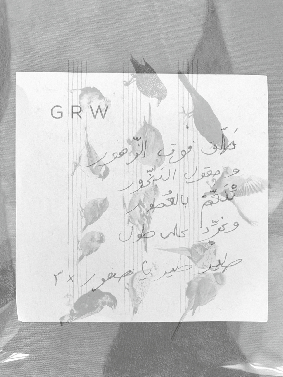 1. Superposition of Untitled, Ralph Mafhoud after the first couplet of À la Volette, 17th century French ritournelle, 2022, with Untitled, Amélie Mourgue d'Algue, collage, 2022