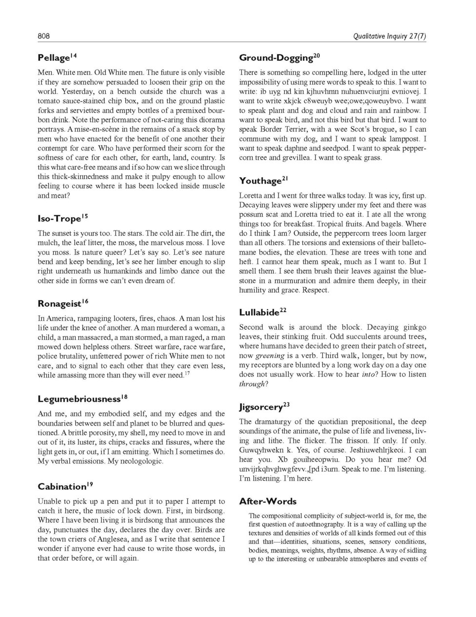 Moutoula, A., 2022. Unclogging the Ears: Nonstop Languaging as Autotheory in Art and Academia. Arts 11: 114.