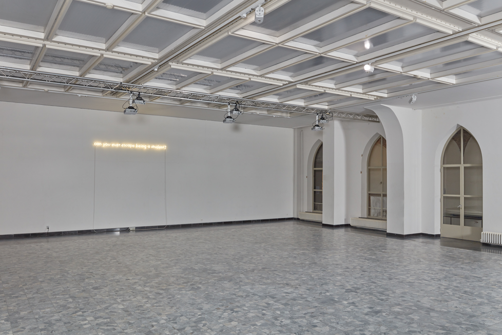Drawing on the understanding of space through embodied memories and over a methodology that includes archival research, story-telling, human relations and visual arts, Mythical Truths (2022 - 2023) envisions an alternative school model where decision making occurs on the authority of its own people. Students, professors, technicians, models, administrative personnel and others that constitute the Royal Academy of Fine Arts, are invited to share memories or their future aspirations as they walk through and around the school buildings. Their stories are recorded in an archive and gain momentum through their sculptural and sound translation in space. This way a polyphonic landscape is created where personal truths and collective myths shape the identity of the institution.