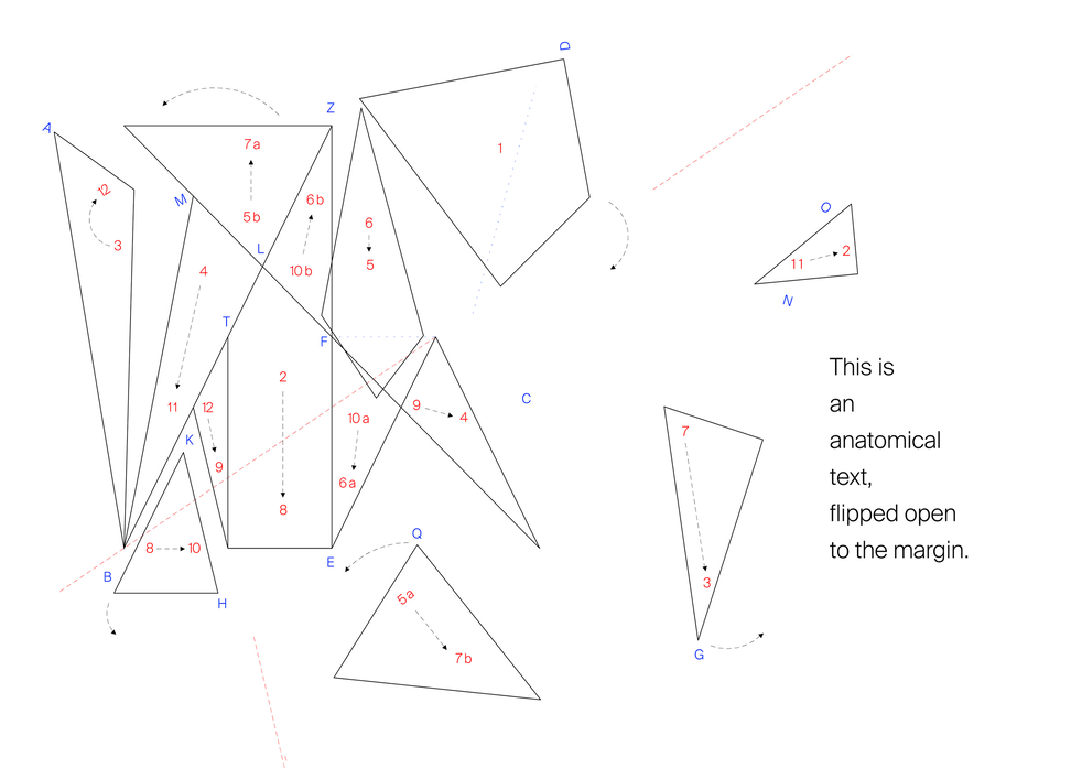 I like how dreams, like algorithms, are ambiguous in terms of language formation. We employ language when we recall dreams, but the crucial elements are in pre-language state, and the recall becomes an intervention; and when one remembers a word, a sentence, a name, they are often in flux, they suddenly change position and meaning, exploiting that fraction of a second when there is a lapse in our attention. Text moves by itself.