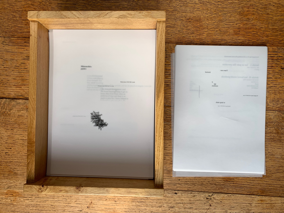 MOTHERBABYHOME (2019) is a 796-page ‘report’ and durational performance. It is a ritual, an excavation of voices composed between 2014 and 2019 entirely from language drawn from historical archives and contemporary sources, including files given to me by local historian Catherine Corless and material sent to my Gmail account via Google Alerts (using ‘tuam’ and ‘mother and baby’).