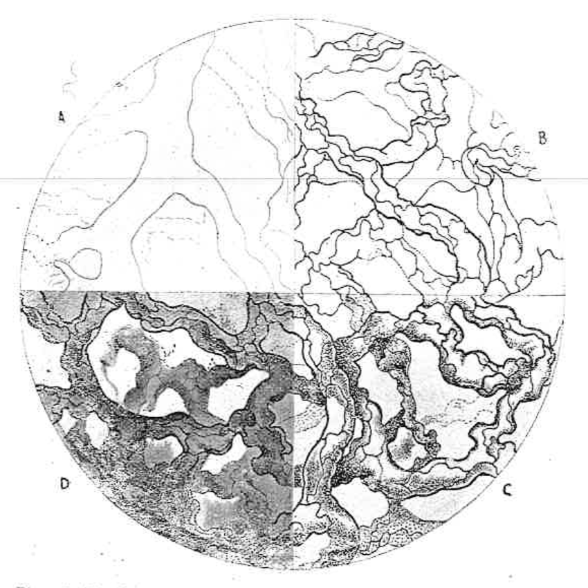 Este método explora o efeito da polarização que ainda encontramos nos poucos manuais de desenho ao microscópio publicados (OCR, 2015), mas também das capacidades cognitivas com que o cérebro tira partido da topografia do papel para lidar com informação complexa (Jabr, 2013).
