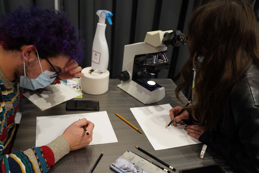 Enquadrado num workshop introdutório de desenho ao microscópio para estudantes de Artes Plásticas e Bioquímica da Universidade do Porto, esta exposição propõe-se discutir e apresentar os resultados da aplicação do método de desenho histológico desenvolvido pelo cientista Abel Salazar (1889-1946) como ferramenta de observação e polarização da atenção; repensar o seu estatuto como documentação científica e o seu envolvimento no processo de aprendizagem.