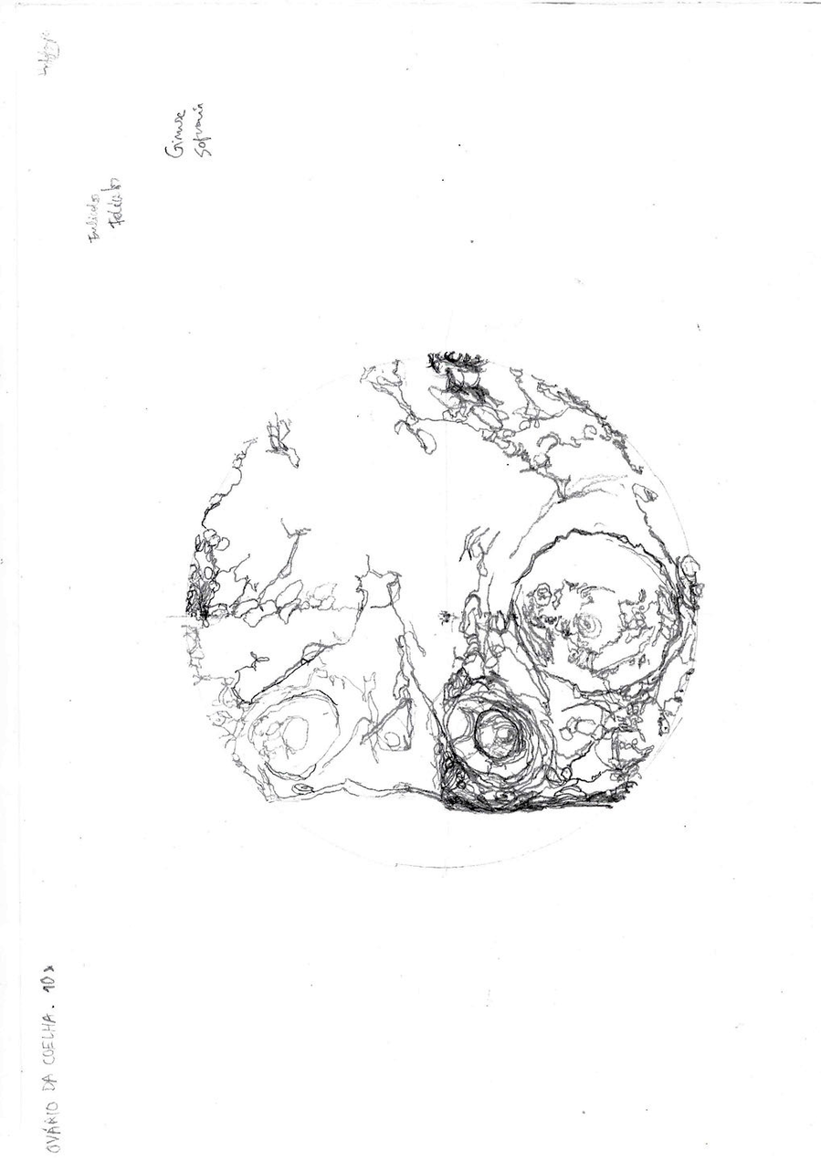 3. Mentalmente, traça-se uma subdivisão análoga no campo microscópico. Para Abel Salazar, o movimento do desenho inicia-se como uma convergência, seguida da desconvergência que orienta automaticamente a análise: