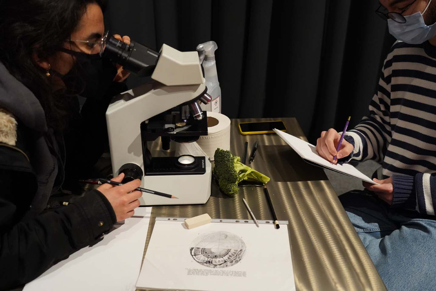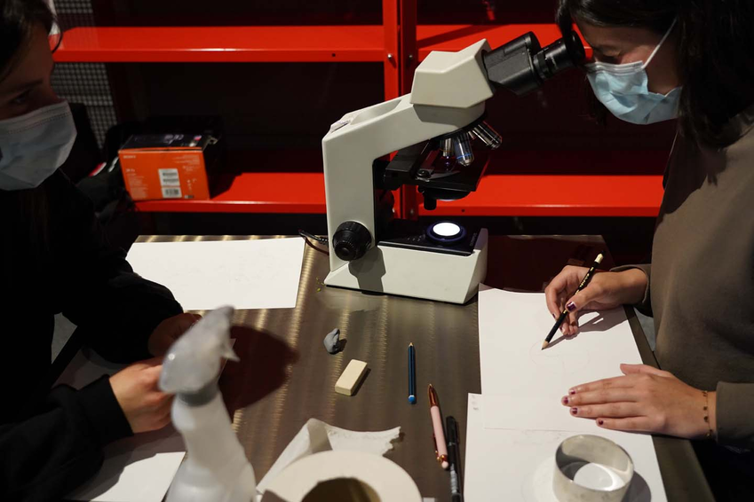 Embora a prática de observação pelo microscópio seja mais comum nas rotinas do estudo e da investigação científica, ela reflete um compromisso partilhado com a prática e a investigação artística: a descoberta de novo mundos visíveis. É com esta expressão – descobrir um novo mundo visível – que o cientista Robert Hooke abriu o seu ensaio Micrographia, publicado originalmente em 1665, onde apresenta a microscopia como uma nova forma de cultura visual. Consciente de que duas pessoas a observar a mesma amostra podem ver coisas diferentes, as notas de Hooke constituem ainda hoje uma base epistemológica para a representação microscópica: observar ao microscópio envolve tomar decisões visuais que alteram o que é observado e abrem caminho ao conhecimento da “verdadeira forma”. A conexão de Robert Hooke com as artes, e em particular com o desenho, está na origem desta nova cultura visual na imagem científica (Doherty, 2012).