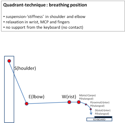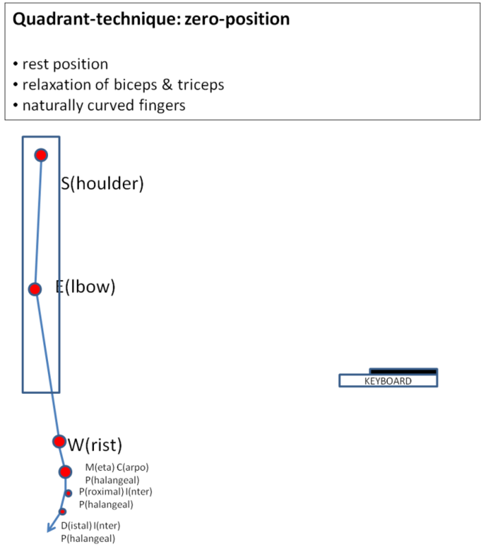 The basic stroke in piano playing is a crucial factor in the development of a pianist’s instrument-directed movement repertoire and different schools of piano playing formulate (implicitly or explicitly) a variety of answers related to the simple question: how to generate the sound of a single and sustained note on a piano in an effective and durable way? The focus of attention among pianists addressing the issue will be on the position and involvement of the knuckles, wrist and shoulder and on the use of muscle-power and gravitational forces. Most likely, the confrontation of ideas will give rise to a pre-Socratic debate ruled by idiosyncratic opinions, cherished beliefs, personal judgements, powerful traditions and heated but often unresolved dispute[i]. One could wonder then if the invocation of extra-disciplinary insights holds the potential of being informative and inspirational to such discussions and if it can meet the expectations of contributing to the realisation of a shared ground to which various considerations could refer to and on which an advancement of insight could be based. What follows is a selection of five scientific units of information drawn from a variety of academic disciplines and chosen with an eye to locating informational units that could be of interest to the issue at hand.