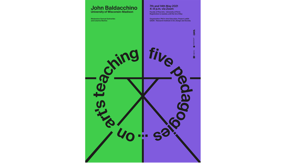 On Art’s Teaching. Five Pedagogies (07.05 e 14.05.2021). [Seminário com John Baldacchino]. LabEA (Coord.). Faculdade de Belas Artes da Universidade do Porto e Zoom, Portugal. https://i2ads.up.pt/en/blog/event/five-pedagogies-on-arts-teaching/