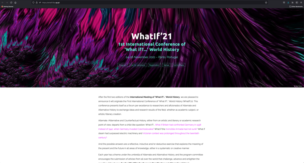 WhatIf’21? 1st International Conference of ‘What If?...’ World History. (24-26.11.2021). [Conferência]. i2ADS/FBAUP, Invicta Imaginaria, Casa Comum. Faculdade de Belas Artes da Universidade do Porto, Portugal. https://whatif.fba.up.pt