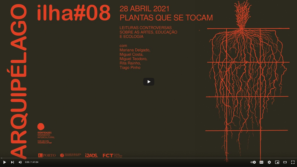 Ciclo de debates Arquipélago > # Encontro Aberto – ilha #9. Plantas que se tocam. Leituras controversas sobre as artes, educação e ecologia (28.04.2021). Conversa com Mariana Delgado, Miguel Costa, Miguel Teodoro, Rita Rainho e Tiago Pinho. ID_CAI. https://www.youtube.com/watch?v=1P2epMnO9Yo