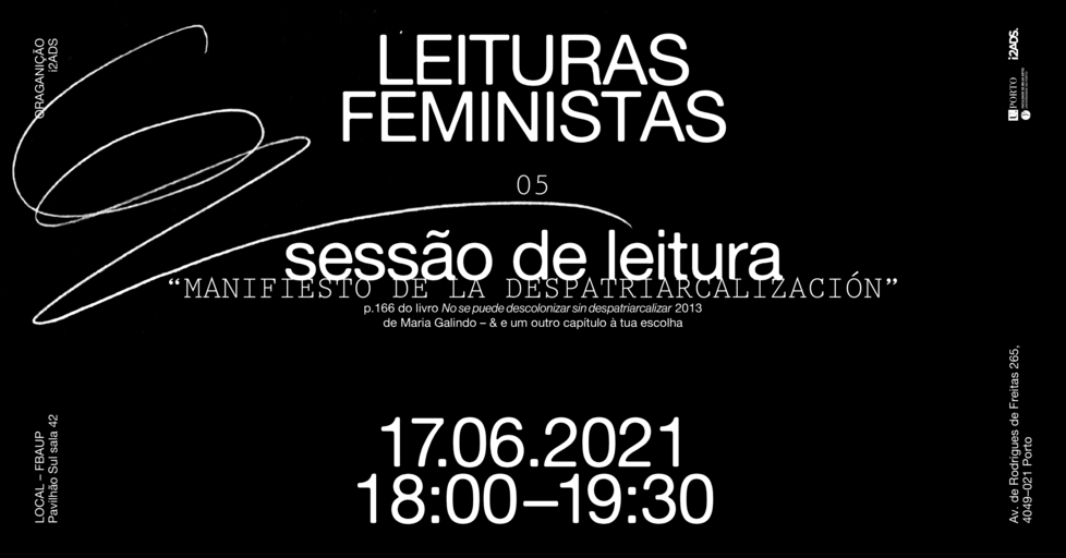Leituras Feministas #5. Manifiesto de la Despatriarcalización (17.06.2021). [Sessão de leitura]. Carla Cruz (Coord.). Faculdade de Belas Artes da Universidade do Porto e online, Portugal.