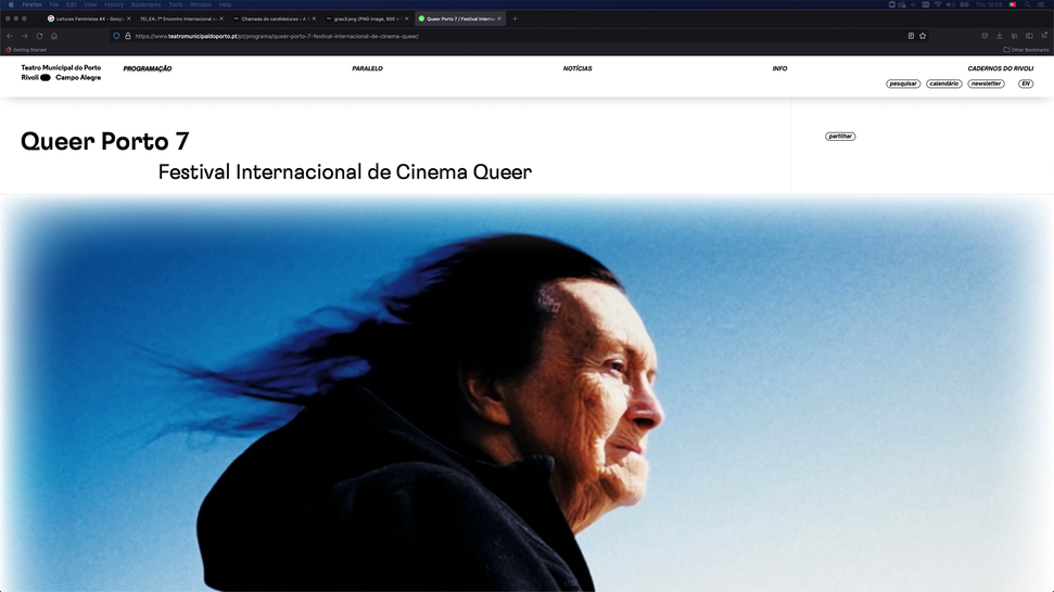 Gendernauts” de Monika Treut (14.10.2021). [Sessão Especial e Masterclass]. 7.ª edição do Queer Porto – Festival Internacional de Cinema, entre 12 e 16 de outubro de 2021. Faculdade de Belas Artes da Universidade do Porto, Portugal. https://www.teatromunicipaldoporto.pt/pt/programa/queer-porto-7-festival-internacional-de-cinema-queer/