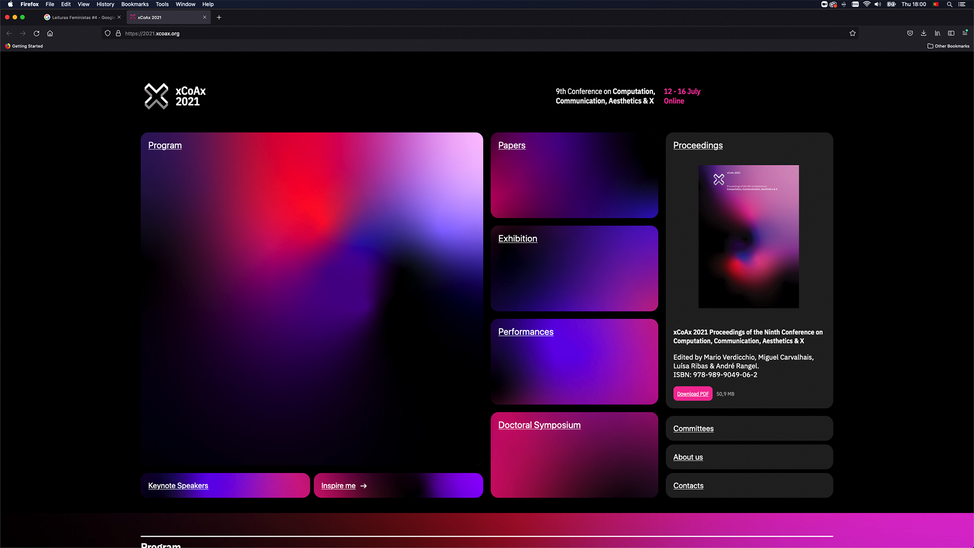 xCoAx 2021, Ninth International Conference on Computation, Communication, Aesthetics and X. (12-16.07.2021). [Conference]. i2ADS/FBAUP, Institute of Electronic Music and Acoustics, University of Music and Performing Arts, Bauhaus-Universität Weimar, Università degli Studi di Bergamo, CIEBA/FBAUL. Miguel Carvalhais, André Rangel & Luís Nunes (Org.). https://2021.xcoax.org