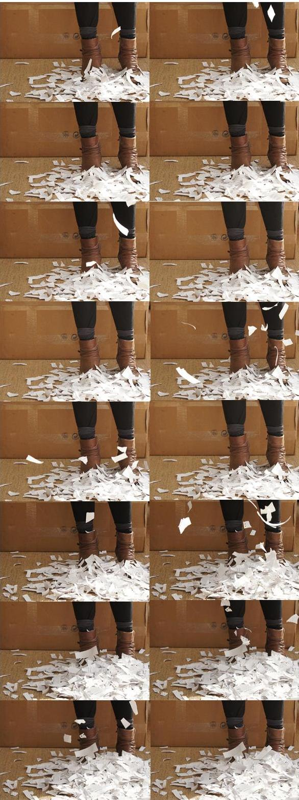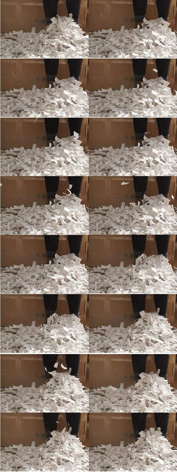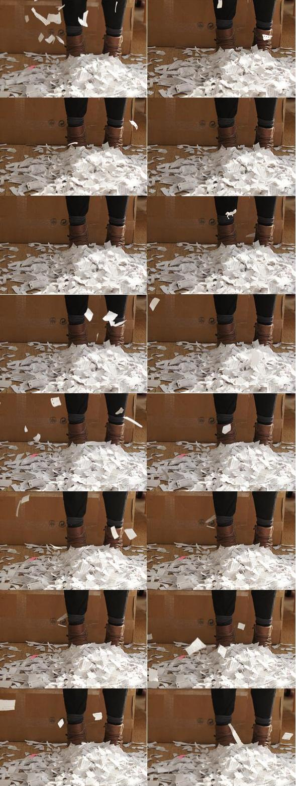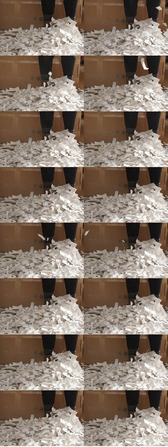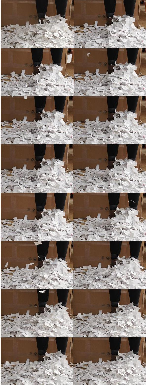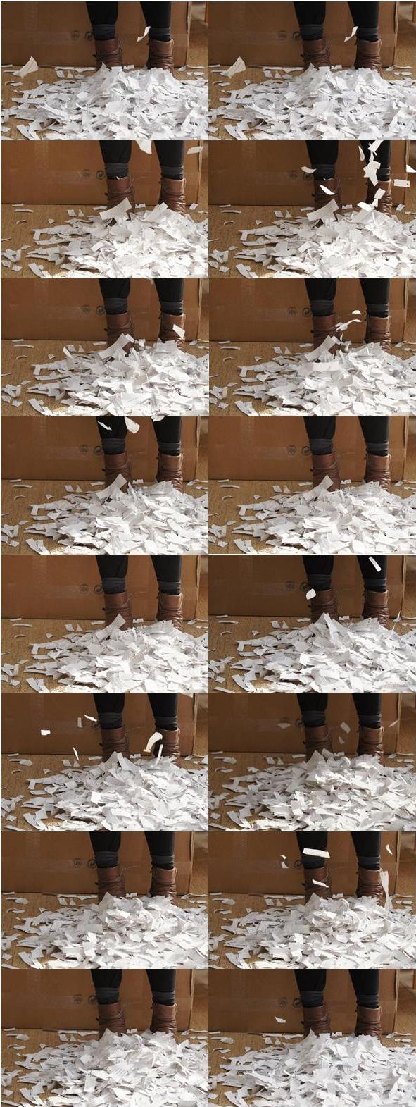 What we present here on the right are documents from a performance originally presented in Helsinki in 2013 (http://nivel.teak.fi/carpa/), and then later in London that same year and again in 2015. The original performance involved a dialogue about our practice and research in which we threw the notes we were reading from into water. To re-perform the dialogue a few months later, we re-wrote new notes and this time ripped them up while talking. And then we did it again. In order to reflect upon this act here, we decided to type the dialogue again (now in its fourth version) and present it alongside this series of photographs of one of us ripping up all the notes we had taken during the process it took to create the work. Just as Francis Alÿs’s block of ice did not disappear, but was eventually transformed into a five minute documentary, so our dialogue-performance has been transformed for and into this exposition. In the context of academic research, rather than saying ‘Sometimes making something leads to nothing’, in fact we are saying that ‘Sometimes making something leads to something different’. And that ‘something different’, although required to take the form of a scholarly output, is in fact just another part of the artistic process and should be treated as such. Indeed, in order to honour the tacit knowledge gained in the first place (and at first hand) the scholarly output can and should be approached in an inventive and experimental manner. It can ‘remain differently’ and still be counted.