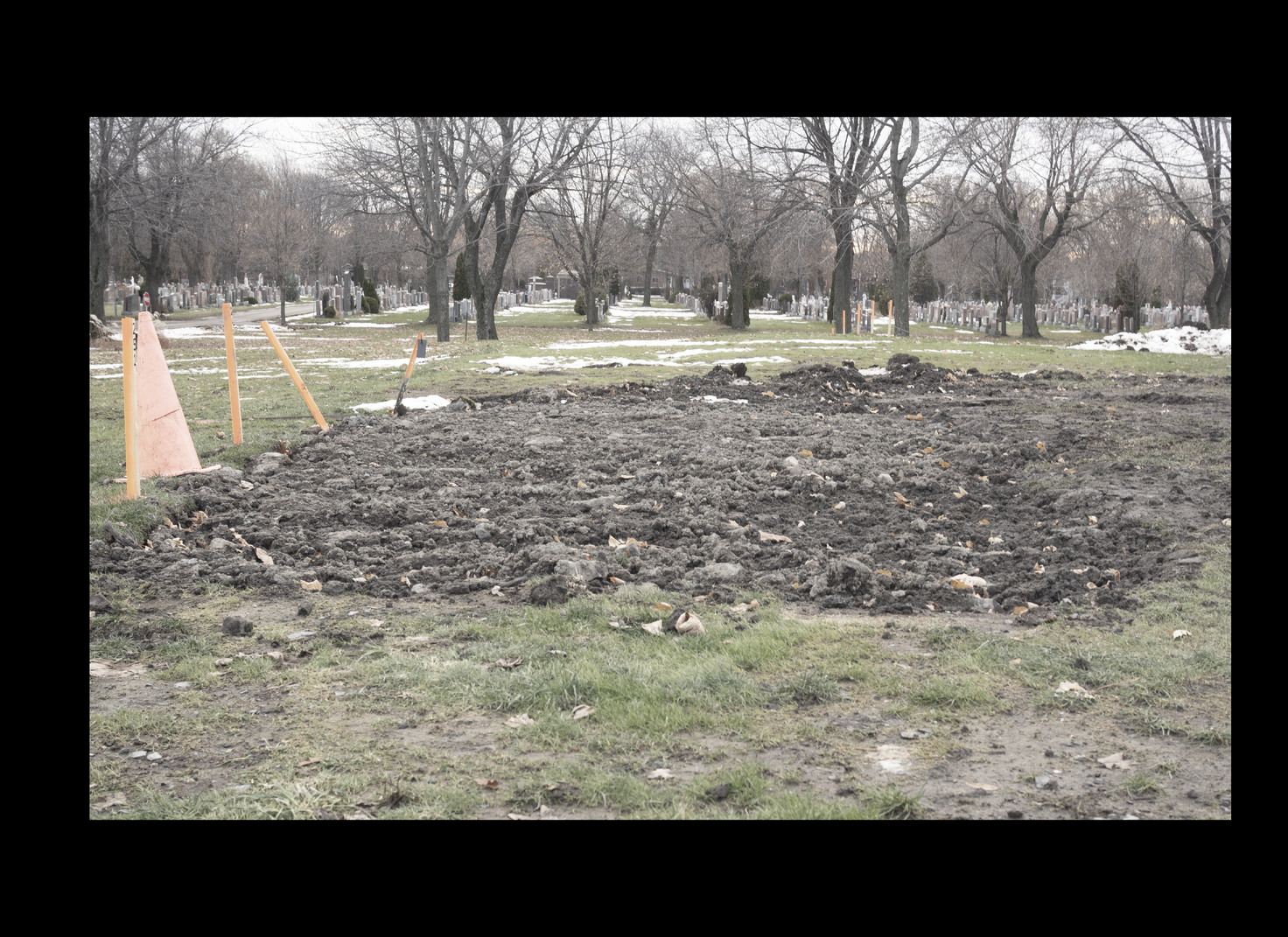 Une trame sonore viendra accompagner la vidéo dans laquelle on pourra entendre la liste des 1500 noms de tous les corps non réclamés depuis 2005. À travers cette installation, je désire valoriser l’unicité de chaque être humain, et la singularité de leur présence; c’est pourquoi il m’importe que chaque personne soit clairement nommée et identifiée dans l’enregistrement. Un débit de lecture assez lent permet de bien isoler chacun des noms. En faisant cela, c’est un peu une façon de les célébrer, de leur rendre hommage un à un, et de continuer à évoquer un lien de proximité entre les morts et le public.