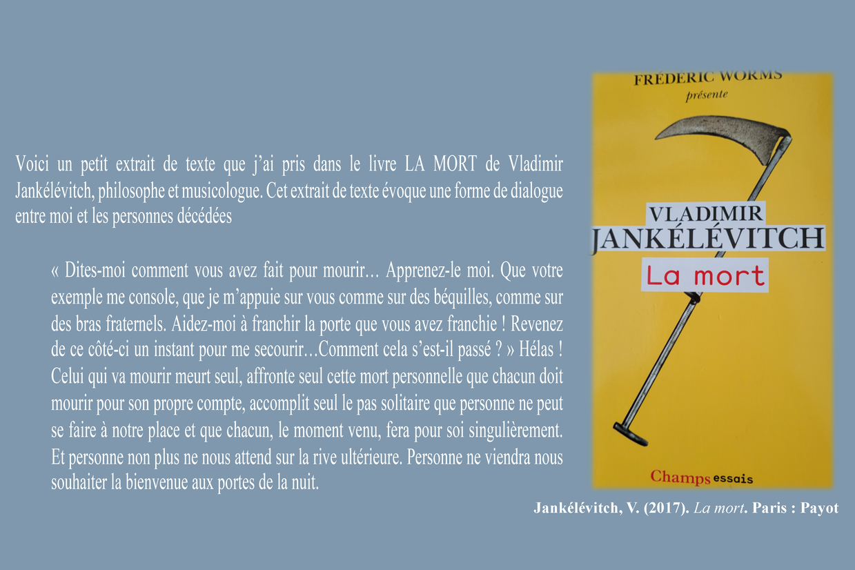 Le projet que je vous présente s'intitule Remuer les cendres et il propose une réflexion sur les corps non réclamés des personnes décédées à Montréal. Mon projet de recherche-création se déploie à travers plusieurs médiums (audio, photographie, vidéo et textualité). Pour atteindre mes objectifs, j’ai l’intention de créer des récits funéraires en textes et en images pour des défunts inconnus, afin que ces personnes ne soient pas oubliées. D’une part, je me suis procuré une liste de nom des corps non réclamés sur le site web du cimetière le repos Saint-François d’Assisse de Montréal, et une autre liste à partir du site web du gouvernement du Québec depuis 2005. Ces documents, je les ai étudiés un peu à la manière d'une investigation. Ils sont révélateurs de plusieurs tabous de la société, comme la solitude (personne vivant seule), la surdose de médicaments et de drogues illicites, le suicide, la maladie mentale et bien sûr la mort. Ils vont également me servir de matière première textuelle, et deviendront donc des éléments incontournables pour faire émerger des récits et contribuer à créer un lien de proximité avec ces morts, car il s'agit bien ici de les connaître un peu plus.