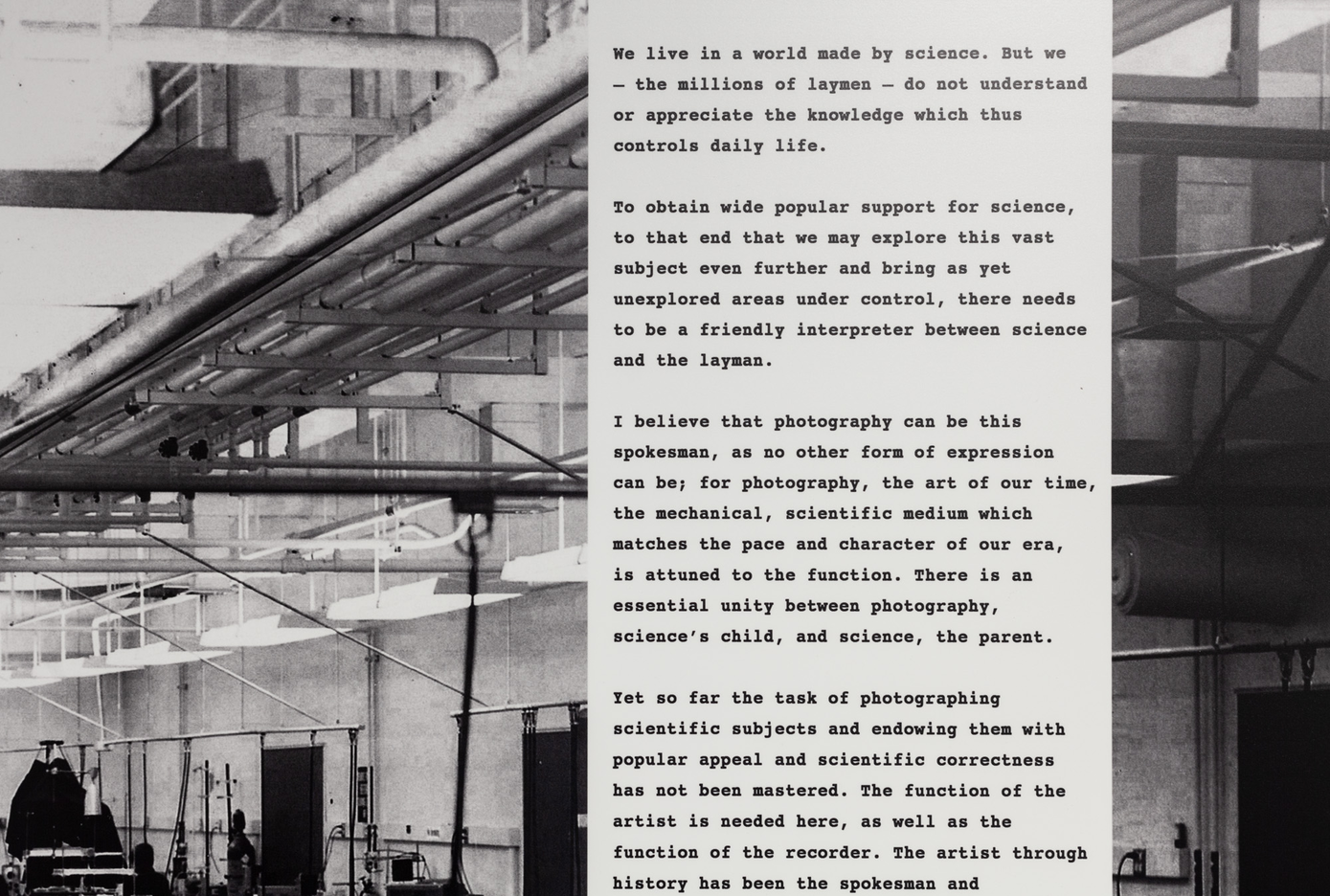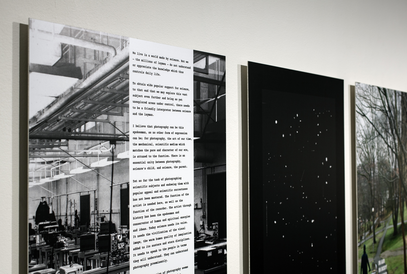 Kerstin Hamilton’s work The Science Question in Feminism focuses on women in the history of science and addresses the discrimination that continuously impacts what and who is prioritized in scientific communities. The images are obvious constructions—they don’t mirror reality: “Gender discrimination is a subject that is visually difficult to capture in a ‘straight’ photograph. Making montages was a way of availing myself of the limited existing photographic material of these twentieth-century scientists. The technique also made it possible to introduce visual indications of the researchers’ scientific achievements, placing the portraits in a context.” A selection of works from the series A World Made by Science are also included in the exhibition. They explore ways in which science permeates the world, with special attention to contemporary female scientists, ground-breaking nanotechnology and its role in battling climate change as well as the rise in antibiotic resistance.