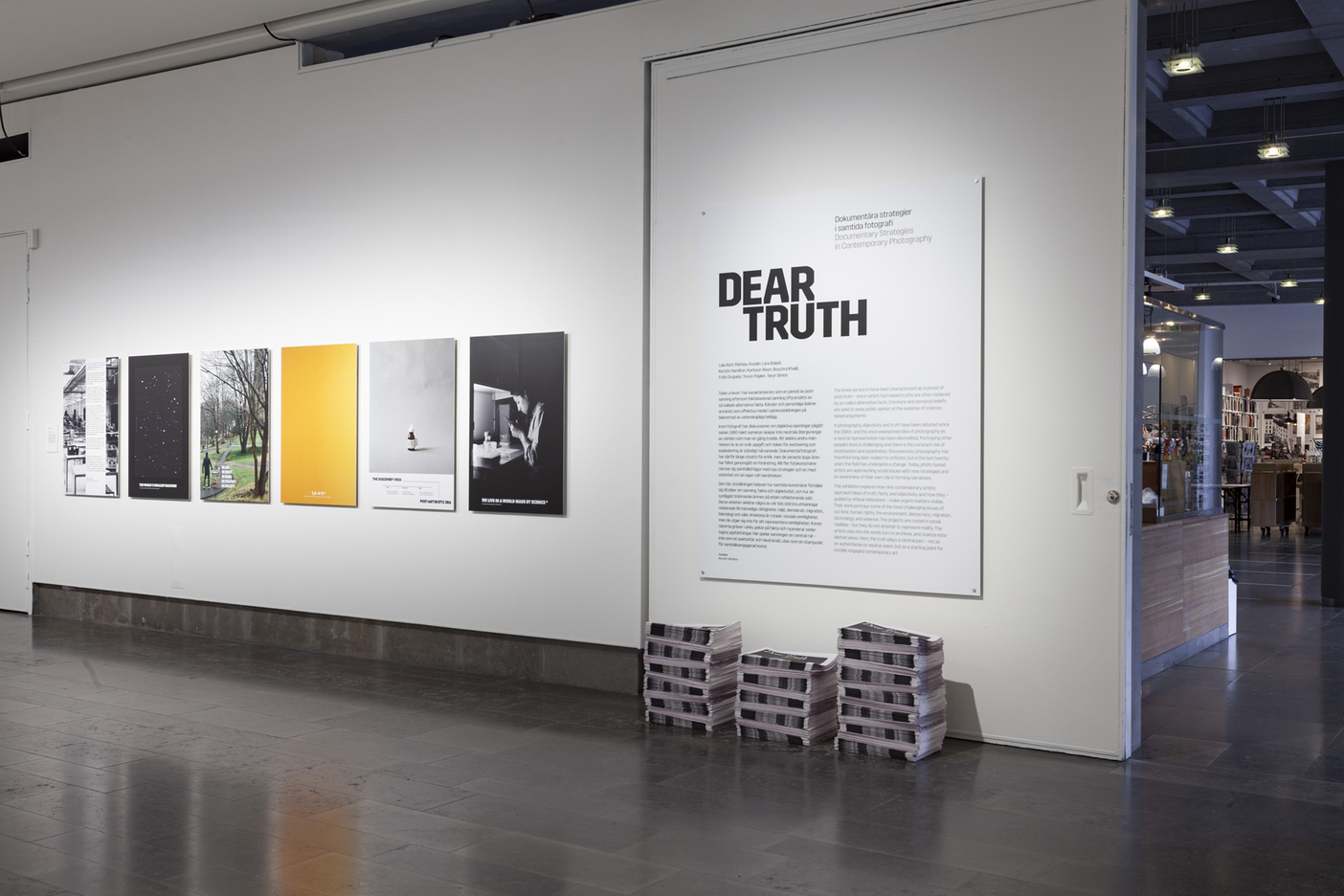 Video introductions and video interviews with a selection of the artists were made in conjunction with the Dear Truth exhibition.* The videos were presented at the Hasselblad Foundation website together with installation images from the exhibition and texts about the artists and artworks.**
