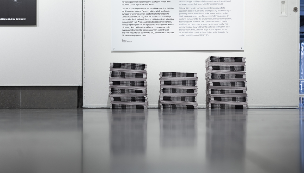 This exhibition explores how nine contemporary artists approach ideas of truth, facts, and objectivity, and how they – guided by ethical reflections – make urgent matters visible. Their work portrays some of the most challenging issues of our time: human rights, the environment, democracy, migration, technology, and violence. The projects are rooted in social realities – but they do not attempt to represent reality. The artists step into the world, turn to archives, and nuance established views. Here, the truth plays a central part – not as an authoritarian or neutral vision, but as a starting point for socially engaged contemporary art.