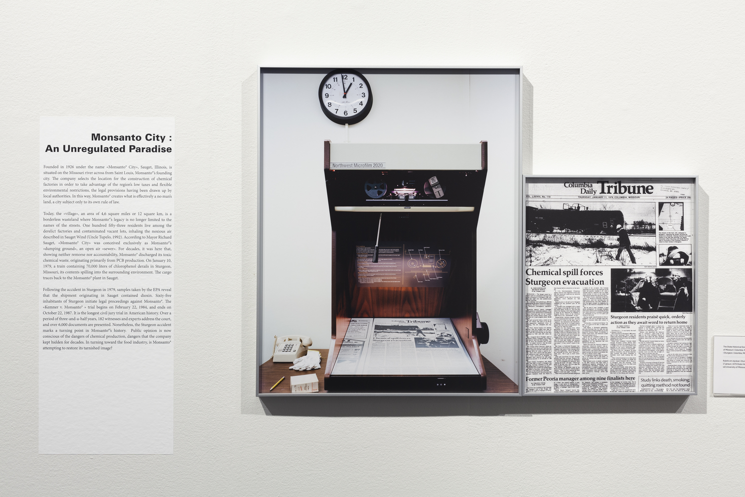 Mathieu Asselin’s photo-based examination of the multinational biotechnology company Monsanto focuses on the devastating effect of toxins introduced into the landscape by Monsanto. The ambitious, five-year undertaking that started in 2011 gave rise to images that serve as reminders of personal suffering and environmental destruction in the wake of one company’s pursuit of profit. Asselin says, “Everybody has their own truths, depending on their moral grounds. The full story is that Monsanto did good things, too. I am choosing to tell only one side of the story because I believe nothing that Monsanto has done good can make up for all the bad things that they have done.” He photographs scenes in the present and adds depth by digging into Monsanto’s advertising history. Archival images that communicate idealized Monsanto visions make up a substantial part of Asselin’s work, entangling the fictitious, dreamy corporate scenarios of the past with new photographs that testify to real traumas in the present.