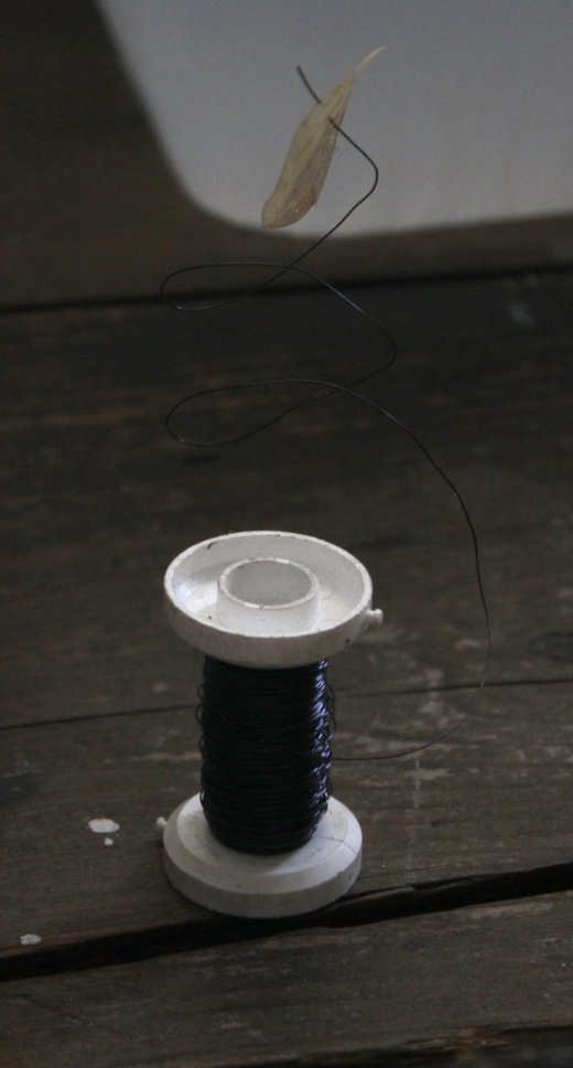 I was looking for black, grey or silver thread, but found brown one. Now I'm happy with the choice, it also has a subtle coarse texture, not completely polished, as if rusty. The weight of one roll in the hand in contrast to the thinness of the thread. To work with a vascillation between opaque/transparent. The impossibility to draw completely straight lines.