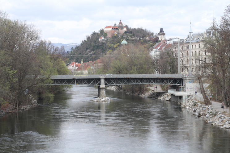 I climbed up to the top, where the ruins of the castle are visible, and looked off into the distance at the Alps to the west. I had been reading about how the climate remains milder in Graz than in many Alpine places because of the shelter provided by this geological wall to the west. Having grown up in an area that is constantly pounded by the Atlantic's waves and gales, I appreciate this point more than many.