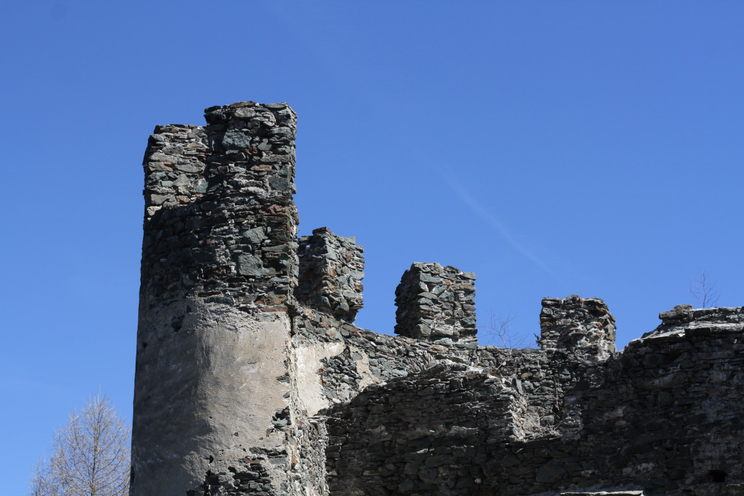 Technically, the castle is off limits, but I go to explore its space and come across deer tracks, human footprints (and old campfires), and other signs of life. Trees grow inside the old castle's spaces, with some having seeded in the concrete between the stones of the walls. The castle is the wildest place here, with all this life; next door and on most sides are pine plantations for Christmas trees, and some farmland. This is human-controlled nature all around nature-controlled human, but there are evidences all around of the occupation by nature of all of these buildings. Bird droppings in the studios, mouse droppings in the second house, deer hoofprints on the paths, ants in the kitchen, trees growing through the old walls. There is a contamination here, of human on nonhuman and vice versa.