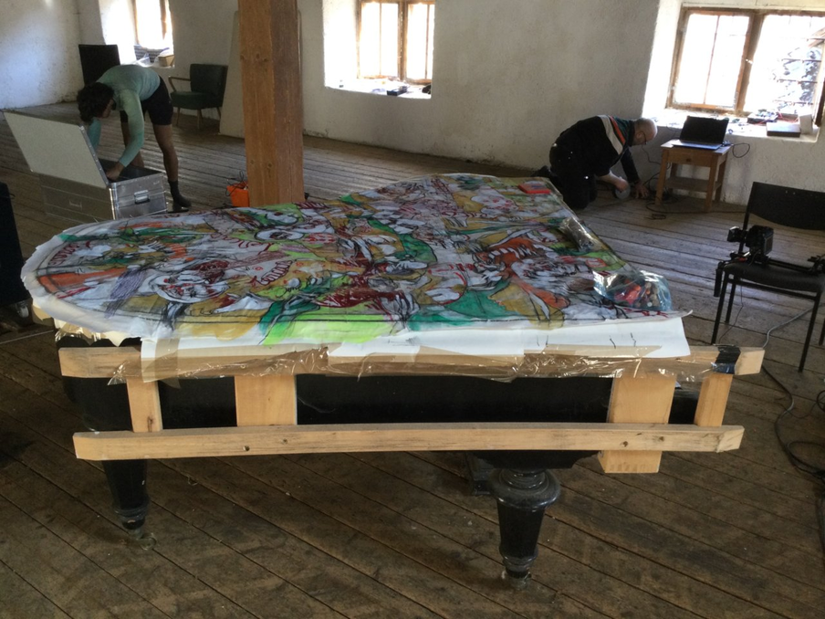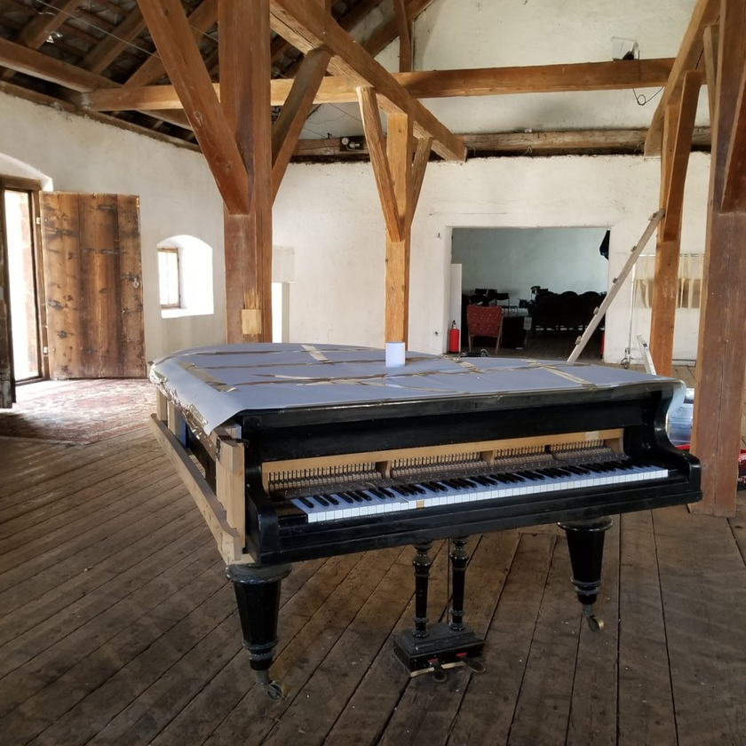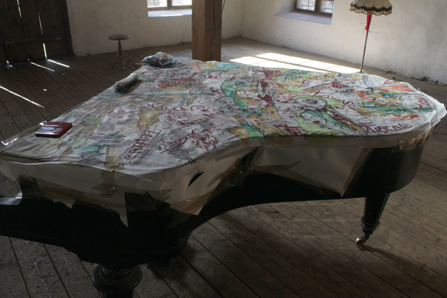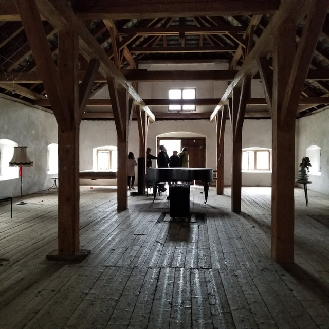 Today’s morning session is in the “concert space". It is interesting that Schrattenberg brings together visual artists in the residencies with musicians, often from improvisation context, that play during the events in summer. That is also the reason a grand piano is found in the neighbouring barn space.