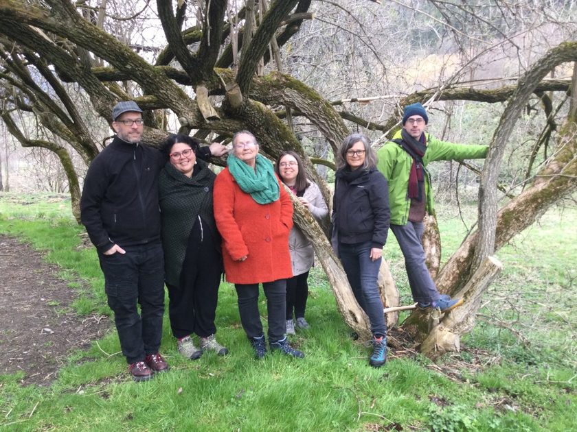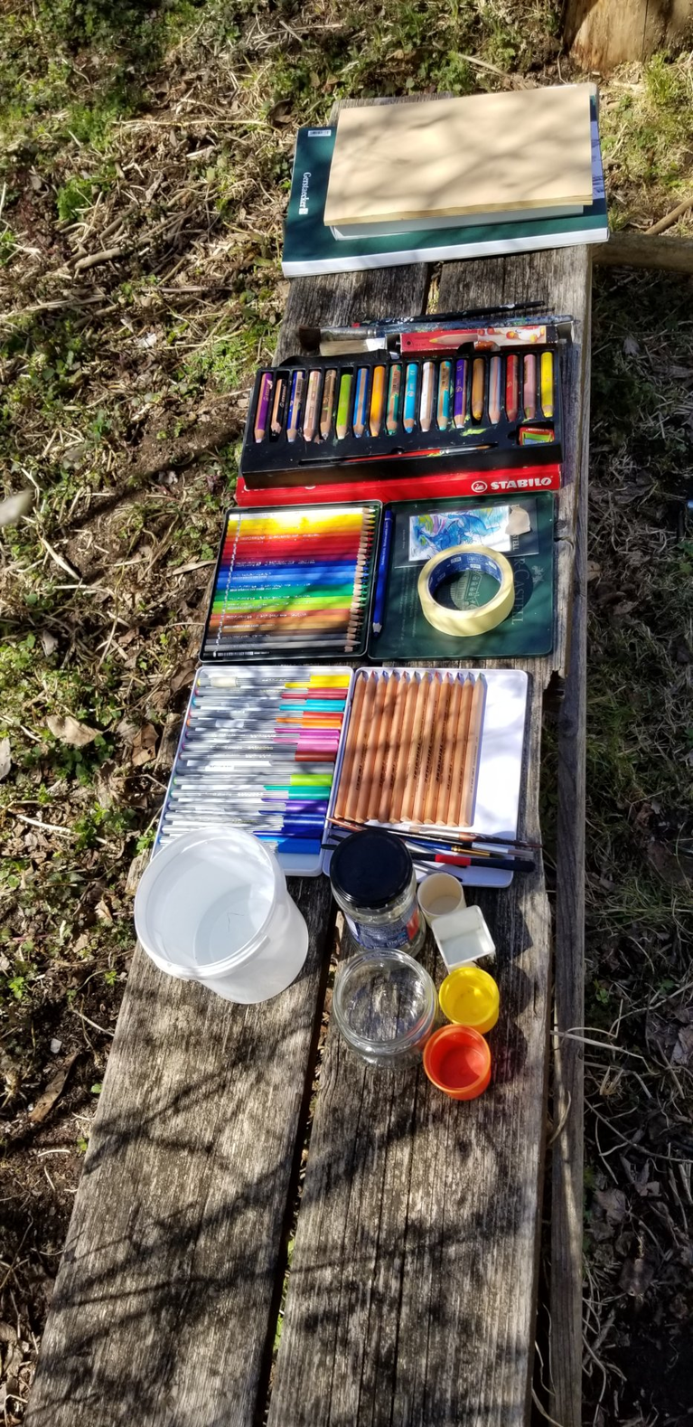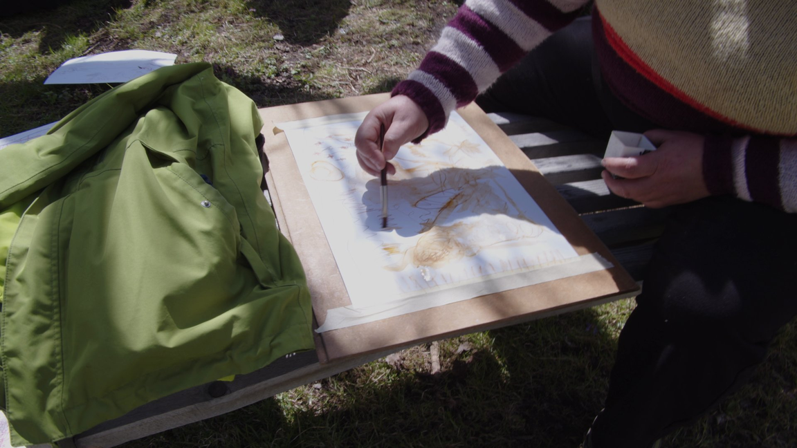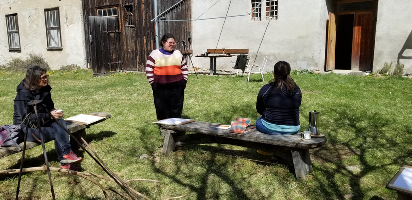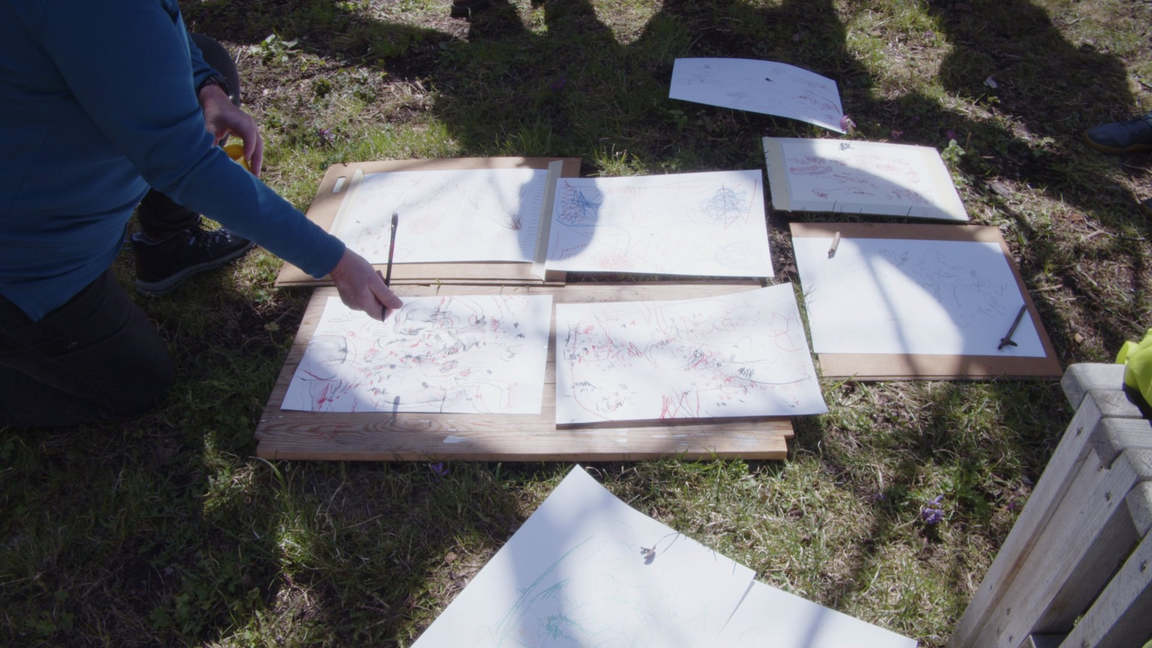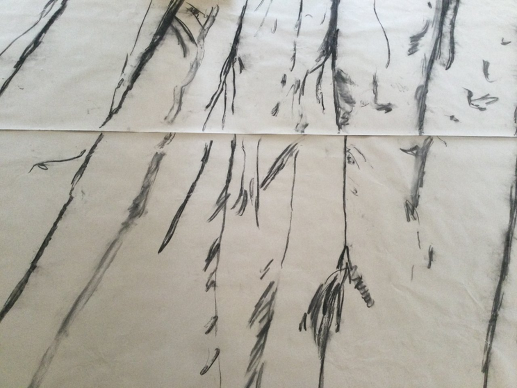 This day, our group gathering ended in a group exercise instructed by Consuelo—drawing, with both hands and two colours, a soundscape of the environment, with eyes closed.