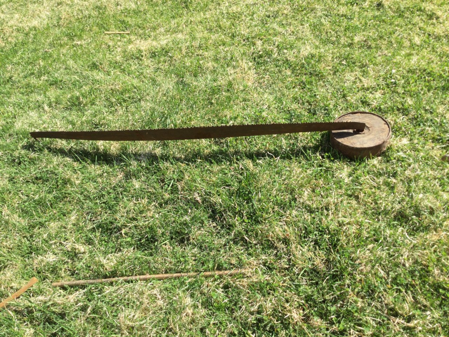 She started to built a dialogue with a round wooden disc object that could serve as a support for a long wooden plank.