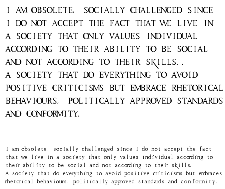 With it, we want to demonstrate that our reading process isn’t necessarily disturbed by imperfect type, and that the quirks and errors that make up his latest font, are the same ones that give it charisma and value. Something easy to translate to our relation with others and the way we interact together as well.