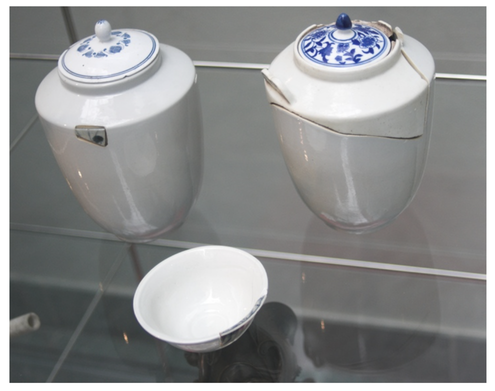 Found porcelain fragment in Jingdezhen ( China ) . Its about found fragment and to connect it with her own stories .The old porcelain piece is used to create new combined objects. Coincidences played an important part. To connected something old with something new. The work raises questions around the meeting of different cultures, places and stories of the people living there, told through the discovery of old porcelain pieces connected with new made forms.