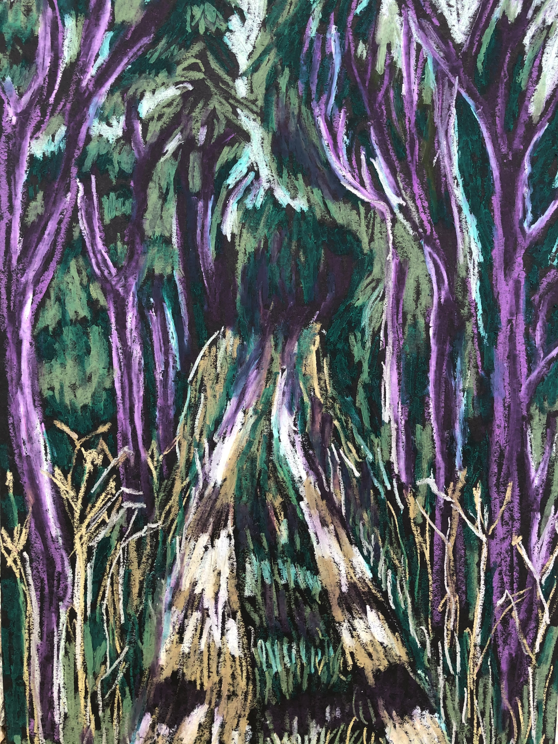 vinden härskar, fåglarna flyger högt, varsamt beträdes mossan, kliv över brutna grenar, blicken mot himlen, lerans ursprung jorden, känsliga fingrar, hjärtat lugnas, balanserad kemi, konstnärliga processen, idéerna, kreativiteten, erfarenheter, samskapande medforskare konstnär