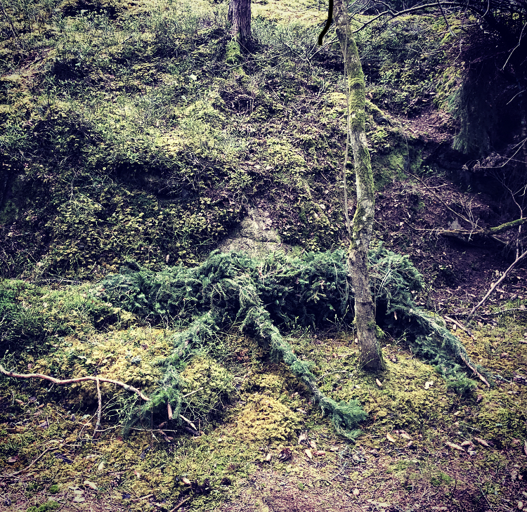 Solen skiner skarpt och himmelen är krispigt klarblå, det är 3 grader kallt eller kanske varmt. Mars månad börjar imorgon och mitt bleka vinter ansikte ler stort av lycka när Mallika och jag är på väg till skogen. Våren är på väg och vi har längtat efter att få komma ut i skogen och prova nya idéer. Idag har vi bestämt att vi ska gå en tyst promenad till vår plats på berget. Vanligtvis brukar vi prata men nu vill vi undersöka vad som händer i tystnaden när vi går tillsammans genom skogen. Syftet är att vi ska bli mer närvarande med skogen. Promenaden till berget tar ca 15 min och den startar där stigen in i skogen börjar.
