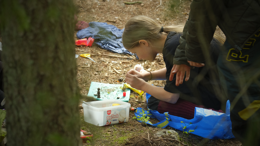 skogen som pedagogisk plats, ramar av lekfullhet, förundran, ett utforskande från ändrat perspektiv, kreativitet, material, görande, en möjlighet till möte med oväntad kunskap, ett omfamnande av något nytt och okänt