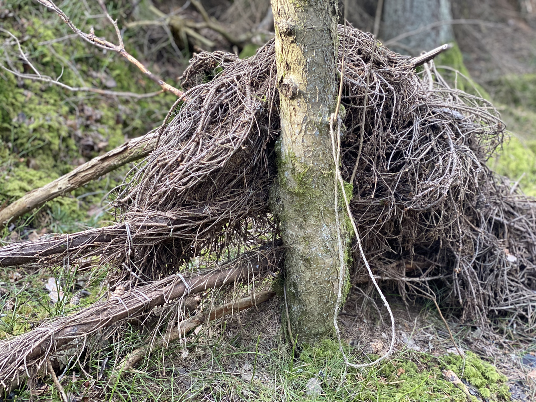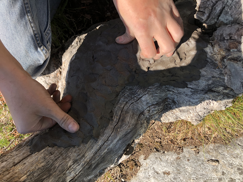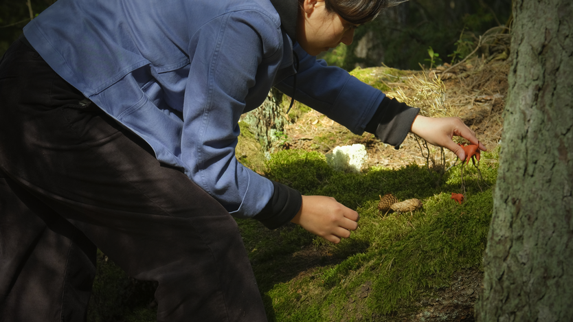 I Introduktion till postkvalitativ metodologi betonas hur etiken är ständigt närvarande i alla relationer.29 Tillsammans med medforskare Mallika Ålander har det varit en pågående diskussion om våra roller som människa, vilket ansvar vi har i undersökandet och hur vi etiskt förhåller oss till mänskliga och icke-mänskliga aktörer, eftersom skogen och materialen är våra medskapare i arbetet. Att agera etiskt handlar om att möjliggöra nya sammankopplingar och skapandet av nya verkligheter som i sin tur ifrågasätter det vi annars tar för givet. Gunnarson och Bodén skriver om mikro-intensiteter som små men betydelsefulla händelser vilket jag under arbetet har lagt stor vikt på. Jag har noggrant studerat hur detaljer i görandet påverkas av alla inblandade aktörer och hur materialet styrs av nyfikenhet och intresse. Vilket i sin tur har påverkat de olika val och utsnitt som jag har studerat i min undersökning.30 Mitt tillvägagångssätt stämmer in på Gunnarsson och Bodens beskrivning, där jag som forskare inte varit ett isolerat subjekt för etik eller kunskapsproduktion, utan har genom hela arbetet varit sammanflätad med undersökningen och varit en deltagande aktör av det empiriska materialet.31
