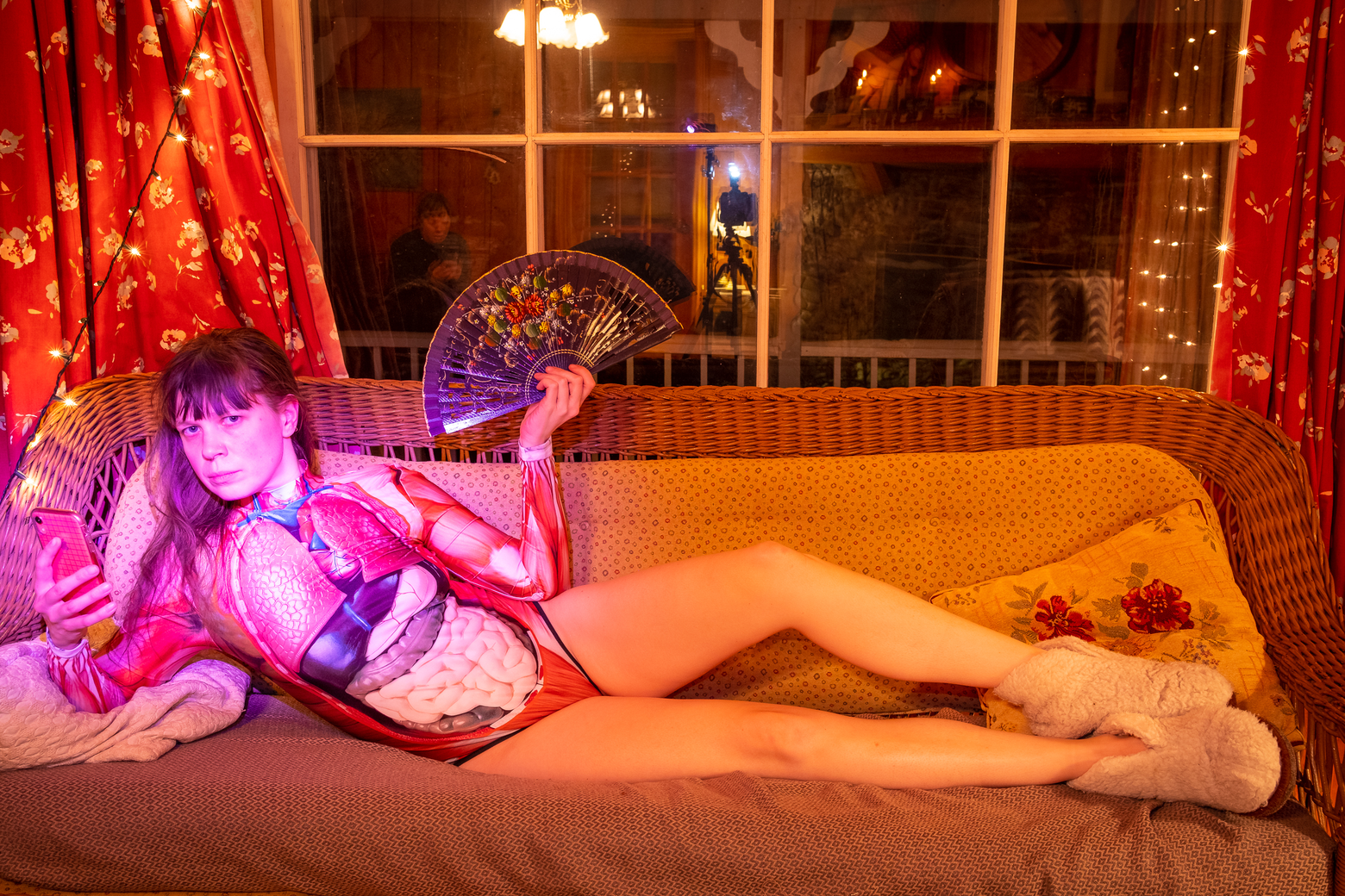 Récemment, j’ai commencé à inclure la présence de l’autre : iel tient le flash, me donne des idées, documente mon processus. Rien n’est véritablement mis en scène. Je me déplace dans leurs espaces intimes, que ce soit maison, atelier, chalet, et c’est le cadrage et l’ajout du lumière qui fait la composition de l’image.