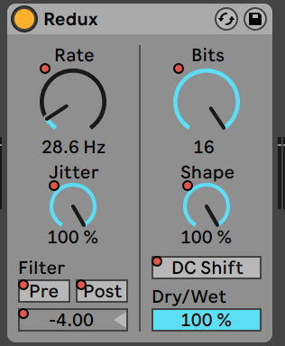 The final plugin that to me generated desirable results was the Redux tool. Redux can lower either the sample rate or bitrate of any given signal, and it is used for grit or a lo-fi aesthetic. Using this tool easily devolved into pure noise, however I had an interesting finding using very specific settings.