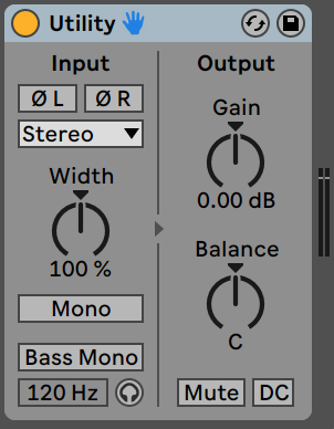 For this session, I decided to use utility followed by a limiter rather than the glue compressor for flattening the signal. The utility tool is, among other things, a simple gain tool. I raised the gain up to maximum and doubled the plugin five times. After that I put a limiter. The difference between this and the glue compressor is, among a sort of abstract differenc in tone, that you do not have the ”click” of the glue compressor as it doesn’t take a millisecond or so before it flattens the signal.