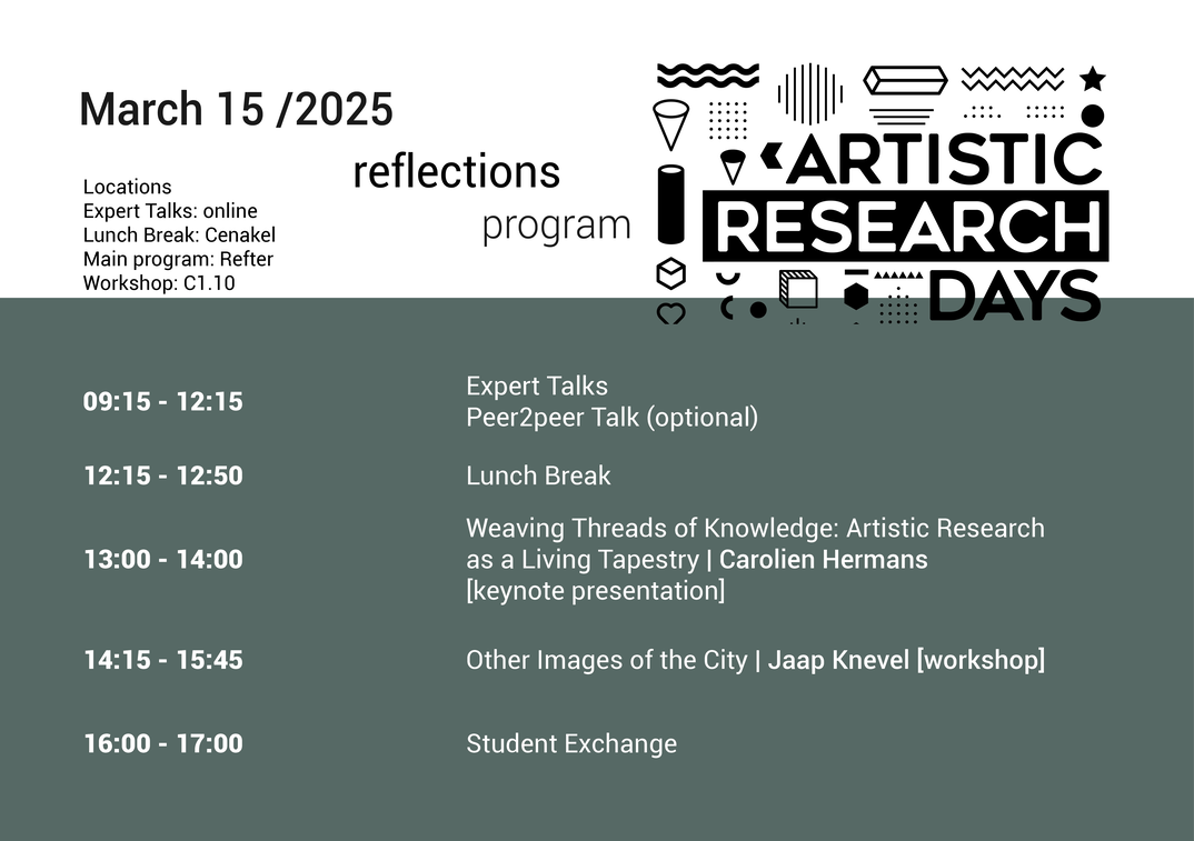 In both cases, I will emphasize that artistic methodologies are not merely research tools but integral to the dissemination process itself, blurring the line between artistic production and knowledge-sharing. These methodologies interweave theoretical insights with creative practice, fostering a rich, multidimensional exchange of knowledge that goes beyond conventional research dissemination. The expositional nature of these practices opens up new ways of sharing knowledge—offering embodied, interactive forms of communication that allow research to be experienced, rather than merely presented.