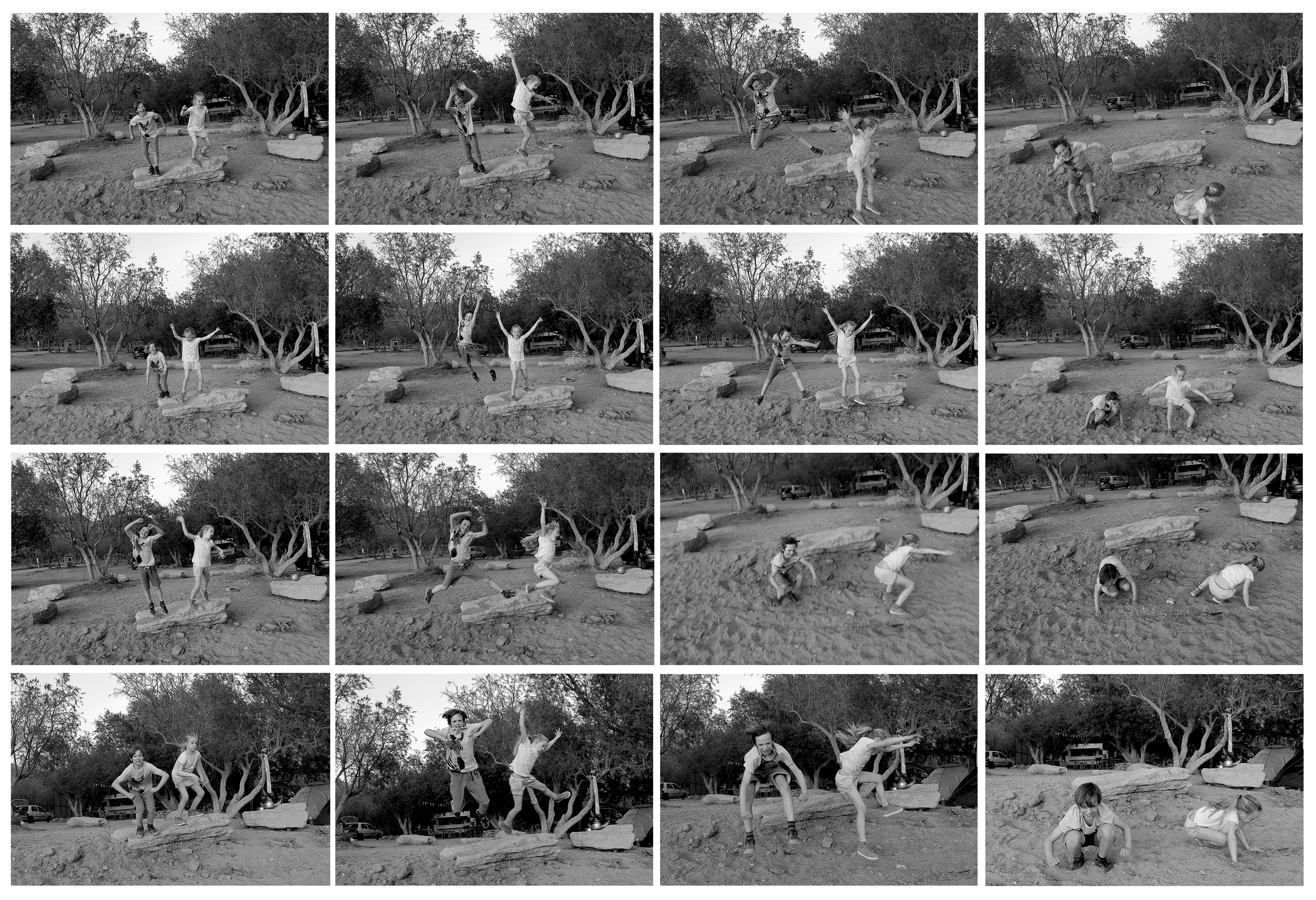 Over a period of five years (from 2013 to 2018) I have collected images of the physical play of my own children, with their friends and neighbor kids. Living archive is here defined as the documentation and collection of a series of play events over a period of five years. ‘Living’ refers to the act of archiving, as the documenting, recording and (re-) arranging of traces over time (Van Alphen, 2014). The archive is “not a passive storehouse of old stuff”’ (p.16), but an active site where knowledge (such a memories, traces) is not only stored but constantly re-constructed. The living archive is open, fragmentary and unstable (Ketelaar, 2018). It consists of more than a hundred photographic sequences and stand-alones that all serve as kinetic markers/traces of the original physical play event.