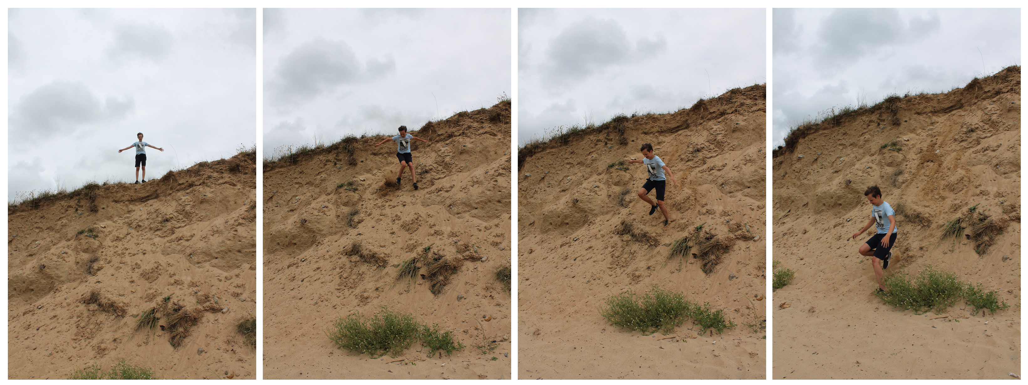 Over a period of five years (from 2013 to 2018) I have collected images of the physical play of my own children, with their friends and neighbor kids. Living archive is here defined as the documentation and collection of a series of play events over a period of five years. ‘Living’ refers to the act of archiving, as the documenting, recording and (re-) arranging of traces over time (Van Alphen, 2014). The archive is “not a passive storehouse of old stuff”’ (p.16), but an active site where knowledge (such a memories, traces) is not only stored but constantly re-constructed. The living archive is open, fragmentary and unstable (Ketelaar, 2018). It consists of more than a hundred photographic sequences and stand-alones that all serve as kinetic markers/traces of the original physical play event.