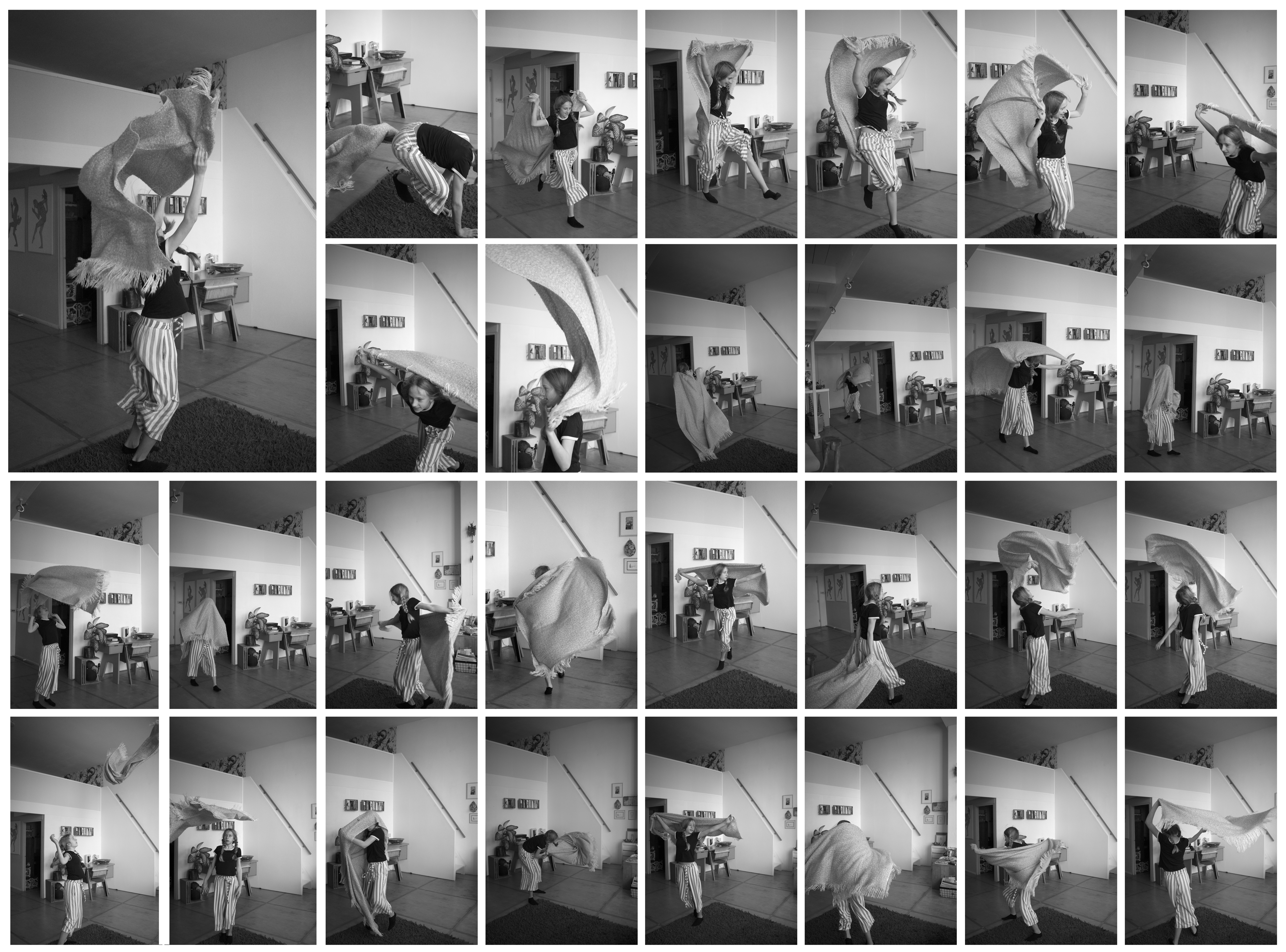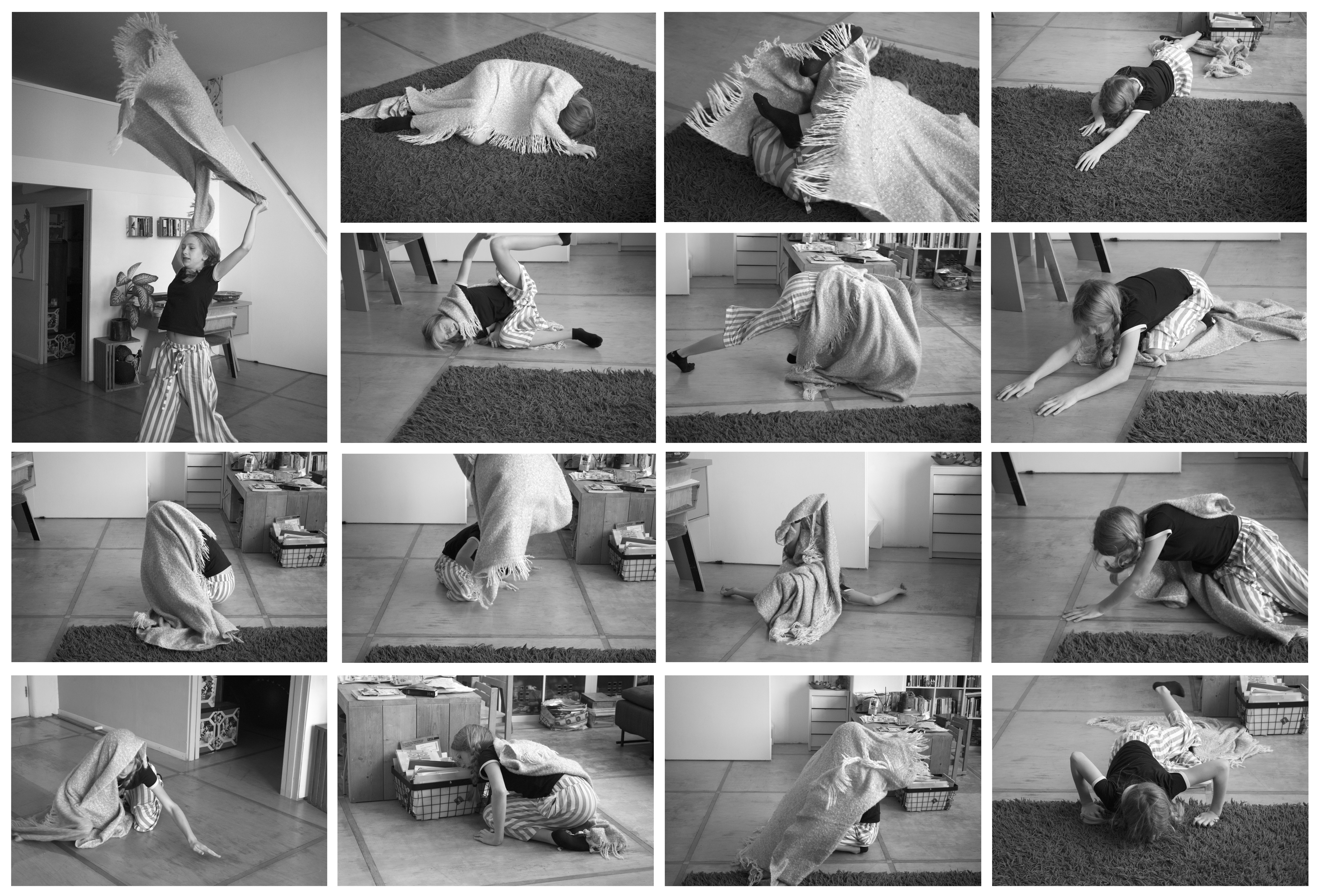 Over a period of five years (from 2013 to 2018) I have collected images of the physical play of my own children, with their friends and neighbor kids. Living archive is here defined as the documentation and collection of a series of play events over a period of five years. ‘Living’ refers to the act of archiving, as the documenting, recording and (re-) arranging of traces over time (Van Alphen, 2014). The archive is “not a passive storehouse of old stuff”’ (p.16), but an active site where knowledge (such a memories, traces) is not only stored but constantly re-constructed. The living archive is open, fragmentary and unstable (Ketelaar, 2018). It consists of more than a hundred photographic sequences and stand-alones that all serve as kinetic markers/traces of the original physical play event.