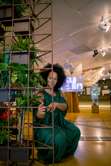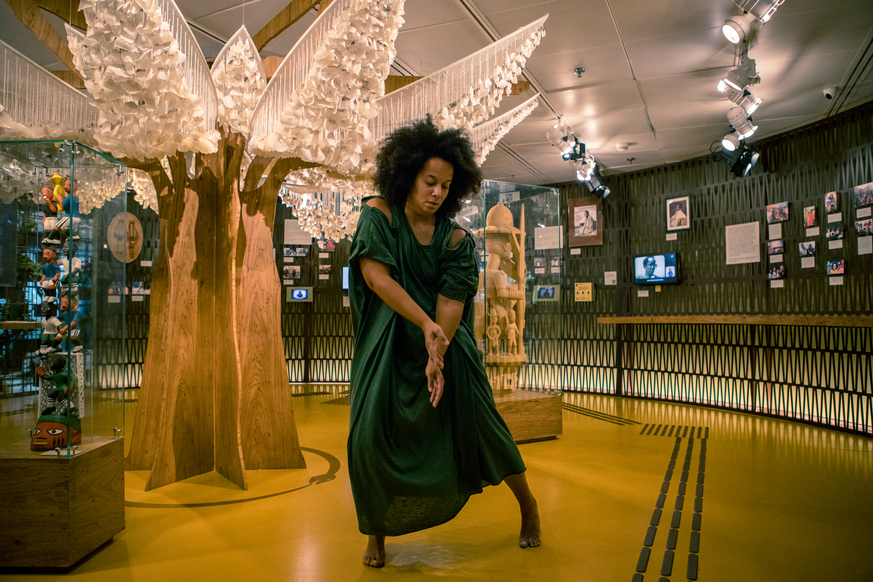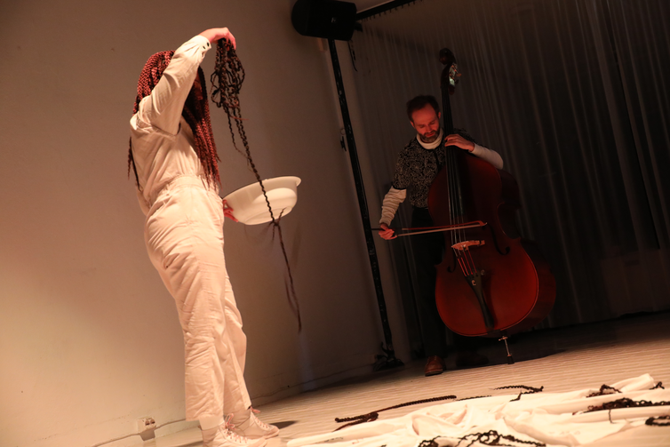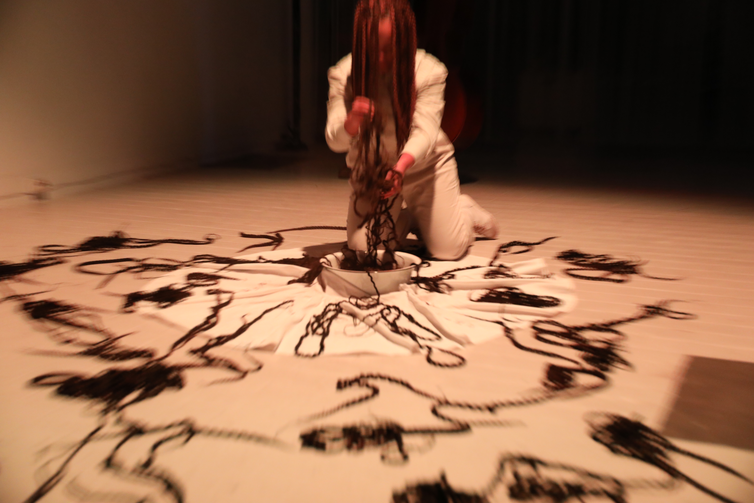 As a performance artist I work from the perspective of the body as a living archive that carries with it history, culture, ancestry, memories and temporalities. These archives are dynamic, moving along time in coexistence and permanence. Reflecting on the Black Atlantic history and the Afro-Diaspora that results from it. The research searches for a new path, a new journey inside of history, archives, legacy, and cosmologies. An Afro-Present body; an Afro-Diasporic body entangled in the transatlantic slave trade history. A being; belonging to traces. Dialoguing with collective memories and archives that were carried by the body and expressed in culture, symbols, philosophy and ways of living. Generating co-narratives; co-creations; call-responses in a spiral temporality.